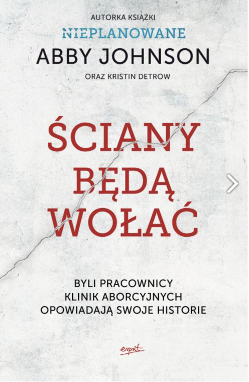 Miliony ludzi w Polsce poznało Abby Johnson dzięki filmowi „Nieplanowane” oraz poruszającej książce pod tym samym tytułem. Jej przyjazd do Polski zbiega się także z premierą nowej książki „Ściany będą wołać”, która ukaże się w lutym nakładem Wydawnictwa Esprit. Znajdują się w niej poruszające świadectwa tych, którzy przez lata brali udział w aborcyjnym procederze. Teraz zabrali głos, by powiedzieć całą prawdę o aborcji. Tak, jak przed laty zrobiła to Abby.