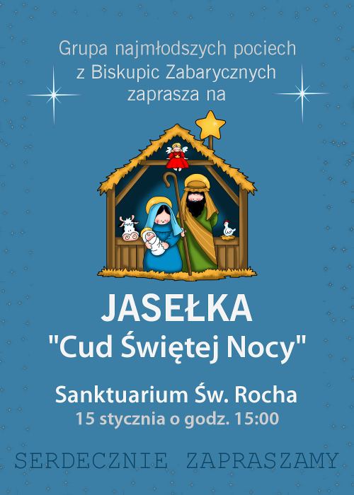 W niedzielę, 15 stycznia o godz. 15:00 w Diecezjalnym Sanktuarium Świętego Rocha w Mikstacie ( diecezja kaliska) jasełka w wykonaniu przedszkolaków z Biskupic Zabarycznych. Dzięki najmłodszym, którzy zaprezentują jasełka pt. "Cud Świętej Nocy" przeżyjemy jeszcze raz tajemnice tej jedynej i niepowtarzalnej w dziejach ludzkości nocy. Nie zabraknie oczywiście Świętej Rodziny, pastuszków, owieczek, aniołów. A jak to wydarzenie Betlejemskiej Nocy zaprezentują mali artyści można się przekonać udając się na ich występ. To ciekawa propozycja na niedzielne popołudnie.
