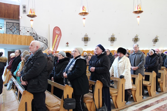 W homilii biskup kaliski wskazał, że papież Leon XIII w 1891 r. ustanowił lokalne święto Objawienia Matki Bożej z Lourdes, a św. Pius X w 1907 r. rozciągnął je na cały Kościół. Dodał, że św. Jan Paweł II w 1992 r. wybrał dzień 11 lutego na Światowy Dzień Chorego. Biskup przypomniał historię objawień Matki Bożej św. Bernadetcie Soubirous w Lourdes i wskazał na przypadki uzdrowień w tym miejscu. Zaznaczył, że Światowy Dzień Chorego zwraca uwagę na obecność w świecie cierpienia fizycznego i duchowego. – Choroby i cierpienie istnieją w świecie od czasów rajskich. Historia każdego narodu i każdego człowieka zawiera karty zapisane cierpieniem. Cała Biblia jest wypełniona tekstami dotyczącymi cierpienia – powiedział celebrans. Dodał, że przykładem cierpienia niezawinionego jest Hiob. – Na przykładzie Hioba okazało się, że nie jest prawdą, iż każde cierpienie jest następstwem winy i ma charakter kary za grzeszne życie. Jednakże bywało i tak jak w przypadku Hioba, że cierpienie miało charakter próby. Warto o tym pamiętać, że cierpienie ma niekiedy charakter próby i Bóg zsyła je na człowieka, by go wewnętrznie pogłębić i oczyścić – tłumaczył kaznodzieja. Podkreślał, że Chrystus poprzez swoją mękę i śmierć na krzyżu nadał sens każdemu ludzkiemu cierpieniu, a prawdę tę przypomniał św. Jan Paweł II w liście apostolskim „Salvifici doloris” ogłoszonym 11 lutego 1984 r. Ubolewał, że dla mediów cierpienie jest nieatrakcyjne i mało miejsca poświęca się mu. – Żyjemy w świecie wypełnionym cierpieniem. Niewiele mówi się o tym w mediach, gdyż tam promuje się młodość, ukazuje się ludzi zdrowych, wysportowanych, silnych i atrakcyjnych. Samo ukazywanie takich ludzi nie jest czymś złym, ale uczciwość jednak wymaga, aby nie zatajać trudnej i głębokiej prawdy o cierpieniu, by nie usuwać na margines ludzi chorych i cierpiących, których tak wielu jest wśród nas – mówił hierarcha. Przekonywał, że chorzy są szczególnie ważną cząstką Kościoła. – Ojciec Święty Jan Paweł II często nazywał chorych skarbem Kościoła. Nie złoty kielich, piękne szaty ani wspaniałe budowle, ale Wy jesteście skarbem Kościoła. Papież Benedykt XVI powiedział, że bez Chrystusa nie potrafimy godnie przeżywać naszego cierpienia, naszej choroby, naszych dolegliwości – podkreślał ordynariusz diecezji kaliskiej. Wskazał, że sakrament chorych, w którym Chrystus niesie umocnienie jest wielkim darem dla ludzi starszych i chorych. – Przyjmujcie z wiarą dar namaszczenia. Przyjmijmy z wiarą Ciało Chrystusa. Prośmy Maryję, którą nazwano Uzdrowieniem Chorych o opiekę nad nami. Prośmy z wiarą, a zostaniemy wysłuchani – powiedział bp Janiak.