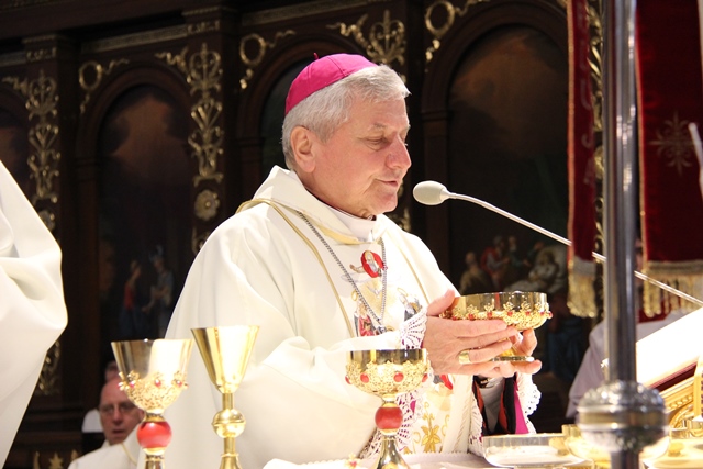 Zachęcał wiernych, aby na co dzień byli świadkami Chrystusa. - Św. Jan Paweł II mówił nam, żebyśmy odważnie wchodzili do Unii Europejskiej i napominał nas, że mamy do spełnienia ogromną rolę, żebyśmy nie wstydzili się swoich korzeni chrześcijańskich i byli odważnymi głosicielami Ewangelii. Kościół to nie jest ten podawany przez media liberalne, ale wy jesteście żywym Kościołem. Umacniajcie się w wierze, a jednocześnie idąc do tego świata jaki jest nie wstydźcie się Chrystusa i Jego Kościoła – powiedział ordynariusz diecezji kaliskiej.