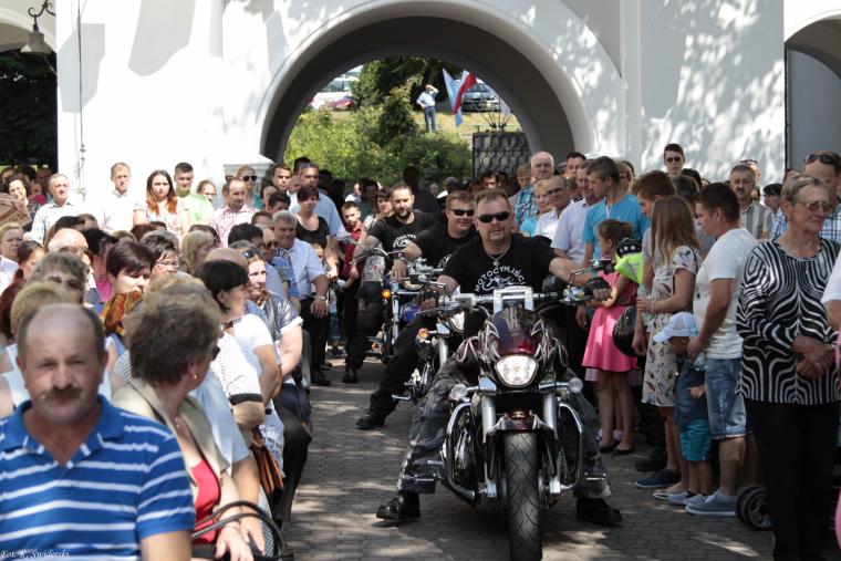 O godzinie 15:00 tuchowskie wzgórze zajęła pielgrzymka motocyklistów i kierowców. Głównym celebransem Mszy Świętej i kaznodzieją był ks. Damian Migacz, diecezjalny duszpasterz kierowców. Pismo Święte mówi o Chrystusie, jako o Tym, który będzie jeździł na oślątku. My buntujemy się nieraz przeciwko tym rzeczom, które są wokół nas. Bo nie działa tak, jak chcielibyśmy. Chcemy być wolni, sami decydować o własnym życiu. Czasami wobec Boga jak nastolatkowie: zbuntowani, chcemy sami decydować. Matka, ojciec widzą z perspektywy lat błędy w życiu dziecka. Zabraniają różnych rzeczy, bo chcą dobrze. To głuche wołanie rodziców, które pozostaje bez echa, jest tragedią. Często narzekają: dziecko nie chce mnie słuchać. A czy ty słuchasz Boga? Często w rodzinie nie szuka się relacji, rozmów, ale spokoju, oderwania od świata. Przyjdźcie do mnie wszyscy… Jezus wskazuje drogę do rozwiązania problemów. Nasze życie jest za krótkie, by eksperymentować. Człowiek pędzi, ale nie wiadomo, dokąd. Trzeba się zastanowić nad jedną z dróg, którą człowiek idzie. Każdy z nas szuka kierownika, wsparcia, jak rozwiązać trudną sytuację. Szukamy najpierw w przyjemnościach materialnych tego, co zbliża mnie do drugiego człowieka, a potem do Boga. Człowiek może się pomylić, ale powinien wiedzieć, gdzie jest źródło wiary, wartości. Jezus jest przewodnikiem, który najlepiej zna drogę do życia wiecznego i On powinien nas prowadzić. Miłość to nie szukanie swego, ale szczęścia i dobra innego. Pod koniec kazania kaznodzieja przytoczył dekalog dla kierowców: