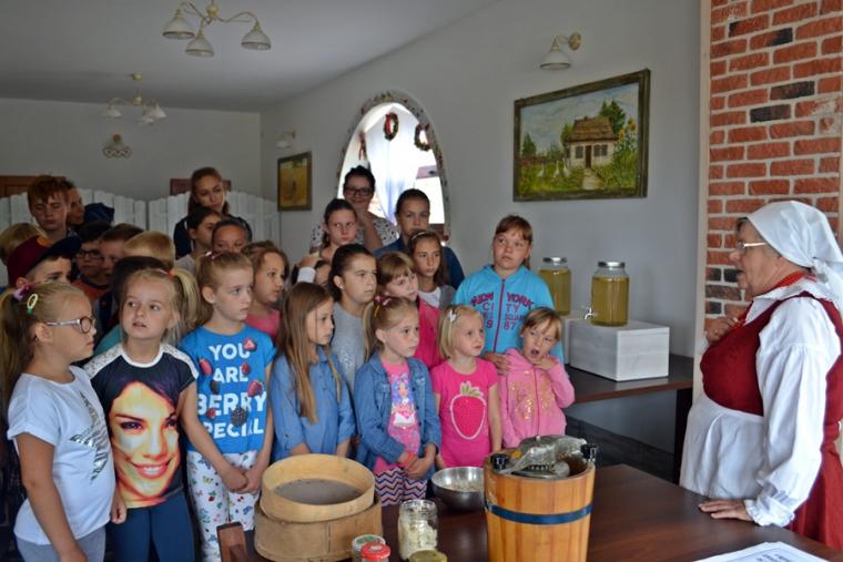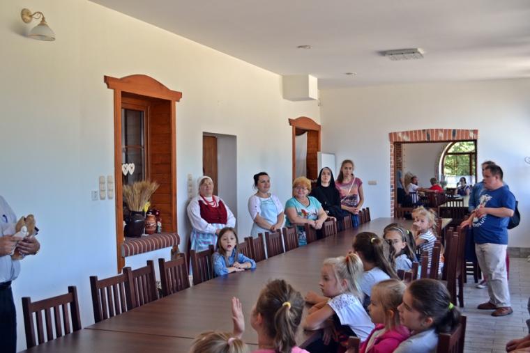 Podczas spotkań ich uczestnicy poznawali atrybuty św. Rocha, ich znaczenie i związek z jego życiem. Jednym z celów Szkoły Świętego Rocha jest zapoznanie młodego pokolenia Mikstaczan z genezą odbywającego się tu z okazji uroczystości odpustowych obrzędem błogosławieństwa zwierząt. Co warto podkreślić odbywa się on w tej społeczności nieprzerwanie od ponad trzystu lat. W poniedziałkowe przedpołudnie odbyło się ostatnie w tym roku spotkanie w Szkole Świętego Rocha. Rozpoczęło się jak zwykle modlitwą w sanktuarium i uczczeniem relikwii. Następnie ks. kustosz opowiedział uczestnikom spotkań o Izydorze Oraczu. Jego obraz znajduje się w sanktuarium. Rozmowa o Izydorze Oraczu stała się okazją do rozmowy o trudzie prac rolnika, a także o szacunku dla chleba. Następnie uczestnicy spotkania udali się do gospodarstwa agroturystycznego, gdzie między innymi w sposób tradycyjny wypieka się chleb i wyrabia masło. Tu dzieci miały okazję przygotować do wypieku bułkę. Wizyta w gospodarstwie agroturystycznym była okazją do obejrzenia różnych maszyn rolniczych. Nie zabrakło oczywiście czasu na zabawę na świeżym powietrzu. Zakończyła się VI już edycja Szkoły Świętego Rocha. Mamy nadzieję, że pomogła ona w duchowym przygotowaniu się młodym parafianom mikstackim do uroczystości odpustowych. To szkoła,która uczyła szacunku dla drugiego człowieka, przekazywała wartości, które ważne były w życiu św. Rocha. Pozwoliła im bliżej poznać postać świętego Patrona. Uczestnicy spotkań otrzymali pamiątkowe dyplomy.