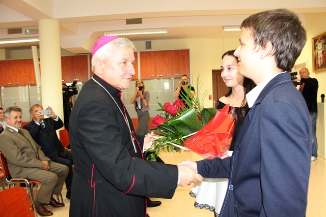 Po Mszy św. wszyscy udali się do budynku Centrum Józefologicznego, w którym mieści się szkoła. Symbolicznego przecięcia wstęgi dokonali prezydent Kalisza Grzegorz Sapiński i uczeń Mikołaj Wawrzyniak.W auli szkoły osobom, które przyczyniły się do powstania Zespołu Szkół Technicznych Diecezji Kaliskiej podziękował dyrektor ks. Adam Kraska. Młodzieży życzył, aby dobrze wykorzystali czas rozwoju swojej młodzieńczej pasji. W imieniu uczniów przemówił Adam Larnet, który podziękował wszystkim, którzy w jakikolwiek sposób przyczynili się do realizacji tego przedsięwzięcia, a w szczególności biskupowi kaliskiemu Edwardowi Janiakowi.Radość z nowo powstałej szkoły wyraził prezydent Kalisza Grzegorz Sapiński, który podkreślał, że placówka jest szansą dla młodych, aby w przyszłości realizowali swoją karierę w regionie.W swoim przemówieniu bp Edward Janiak wyjawił, że utworzenie takiej szkoły było jego marzeniem. Zachęcał uczniów, aby w trakcie nauki rozwijali swoje talenty. – Ten czas na kształcenie jest darem. Nie zmarnujcie tego czasu, ponieważ to, z czego tutaj skorzystacie będzie owocować w przyszłości – powiedział ordynariusz diecezji kaliskiej. Zebrani w nowej szkole mieli okazję obejrzeć program artystyczny w wykonaniu uczniów.