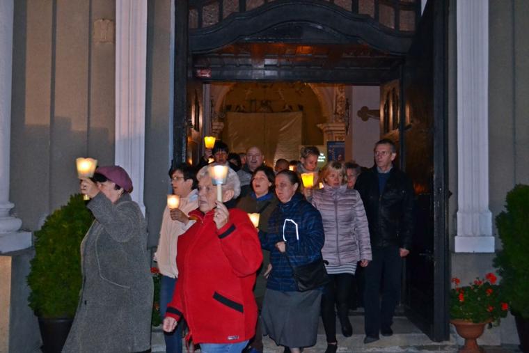 Po zakończeniu modlitwy różańcowej za krzyżem i figurą Matki Boże Fatimskiej ze śpiewem na ustach, z płonącymi lampionami wyruszyliśmy w procesji wokół kościoła. Po powrocie procesji do kościoła w łączności duchowej z Jasną Górą zaśpiewaliśmy Apel Jasnogórski. Ku niebu popłynęły słowa: Maryjo: jestem, pamiętam, czuwam.
