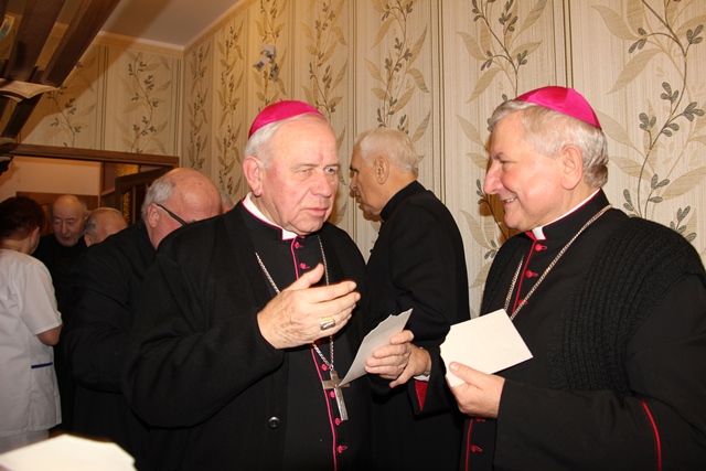W spotkaniu opłatkowym uczestniczyli też biskup pomocniczy Łukasz Buzun, biskupi seniorzy Stanisław Napierała i Teofil Wilski oraz dyrektor domu ks. prał. Jan Wolniak.