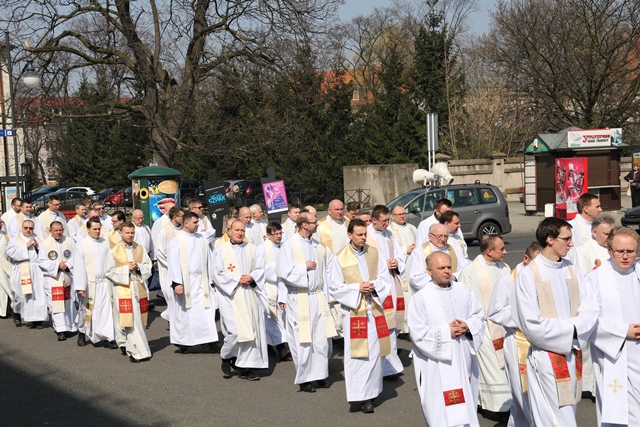Dodał, że biskupi w liście do kapłanów na Wielki Czwartek uświadamiają, że nie można posługiwania kapłańskiego ograniczać tylko do posługi nauczania i uświęcania, ale trzeba podejmować wysiłek wychodzenia, zbliżania się do każdego człowieka. - Pierwszym naszym obowiązkiem jest posługa miłości. Trzeba dziś więcej realizacji tego oficjum caritatis dla dobra człowieka, Kościoła, naszego duchowego zdrowia, dobra naszej kapłańskiej tożsamości. Każdego z nas na to stać – stwierdził ordynariusz diecezji opolskiej.