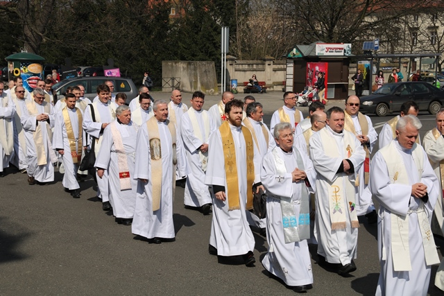 Po nabożeństwie w katedrze kapłani procesyjnie przeszli do Narodowego Sanktuarium św. Józefa na Eucharystię. Mszy św. przewodniczył bp Andrzej Czaja, ordynariusz diecezji opolskiej w asyście biskupa kaliskiego Edwarda Janiaka, biskupa pomocniczego Łukasza Buzuna, bp seniora Stanisława Napierały i zgromadzonych księży.