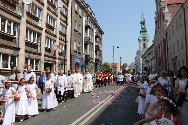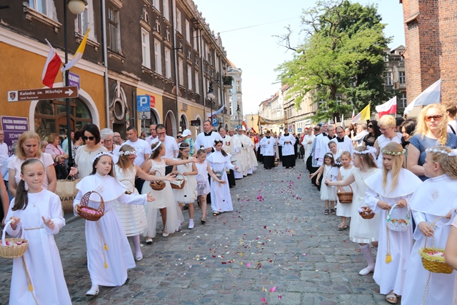 - To pięknie, że mogliśmy przejść dzisiaj ulicami, żeby Pana Boga zaprosić do domów, do rodzin nawet przez otwarte okna i balkony - mówił bp Edward Janiak, który przewodniczył uroczystościom Bożego Ciała w Kaliszu.