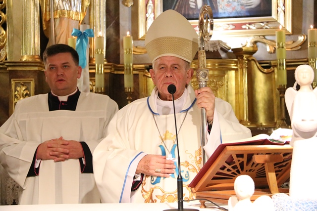 Dziękował parafianom, że w 100. rocznicę odzyskania przez Polskę niepodległości postawili w przestrzeni publicznej kapliczkę św. Michała Archanioła, patrona parafii. - Nasza ojczyzna jest też dotknięta złem. Ile jest zła, chaosu, zamętu pojęciowego, ludzie są zagubieni. Ile można by zrobić dobra w Polsce, gdyby Polacy w sprawach istotnych i ważnych dla ojczyzny jednoczyli się, a tutaj codziennie większa walka, codziennie większa nienawiść. Niech w przestrzeni waszej parafii będzie zwycięstwo nad złem. Wy jako wspólnota parafialna pod wodzą Maryi Niepokalanej i św. Michała Archanioła zmierzcie się ze złem. Umiejcie zjednoczyć się, jeżeli chodzi o dobro wspólne – powiedział biskup kaliski senior.