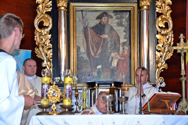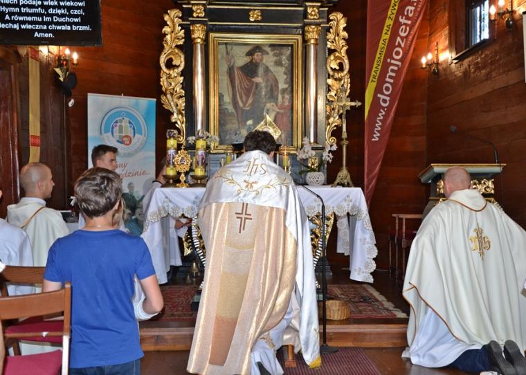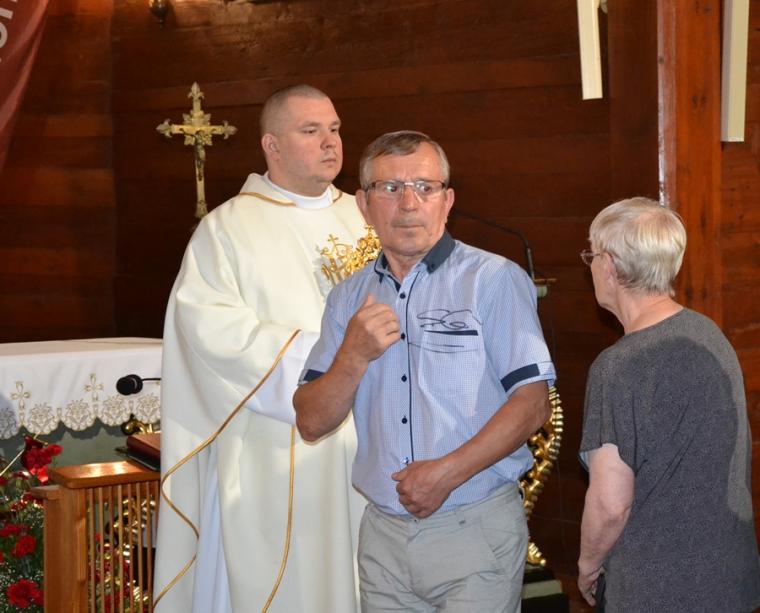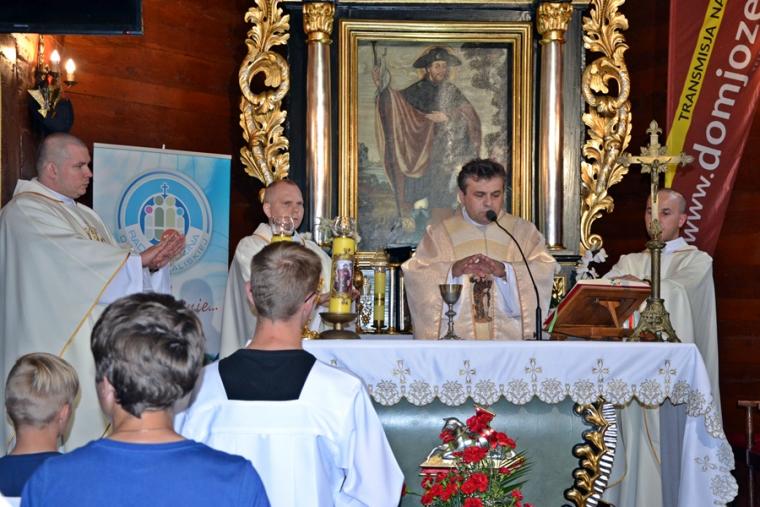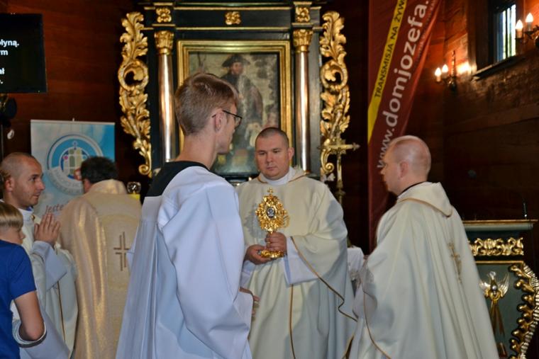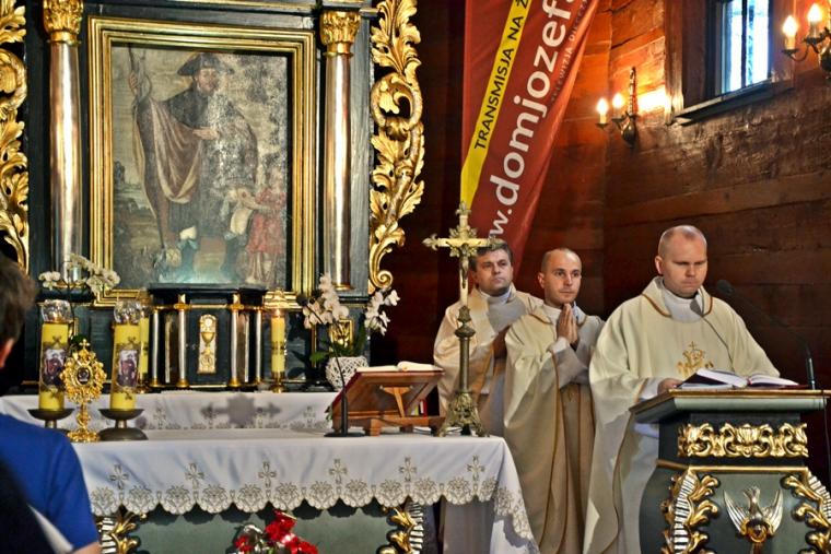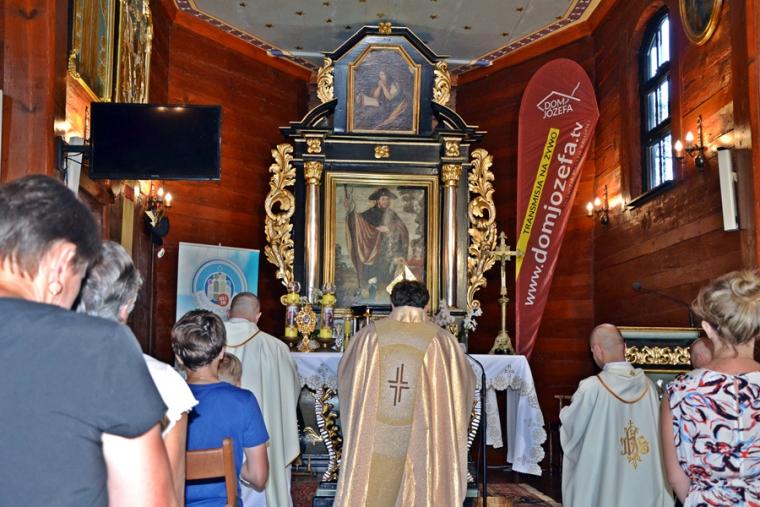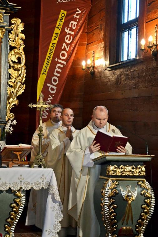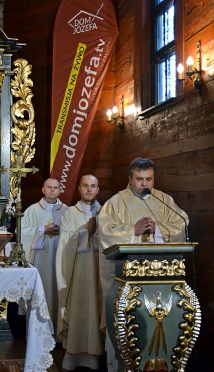 Jest tradycją w mikstackiej wspólnocie parafialnej, że w poniedziałki w Diecezjalnym Sanktuarium Świętego Rocha sprawowana jest msza święta, a po niej nabożeństwo do św. Rocha. Uczestniczy w nim wielu parafian. W poniedziałek, 24 czerwca było ich znacznie więcej. Nie wszyscy uczestniczyli w nim bezpośrednio, ale wielu włączyło się w nie duchowo, gdyż w tym dniu w ramach czwartych poniedziałków miesiąca przeprowadzona została na żywo transmisja radiowo- telewizyjna przez Radio Rodzina i TV Internetową Dom Józefa. Gościliśmy w tym dniu w sanktuarium Dyrektora Diecezjalnego Radia Rodzina i TV Internetowej Dom Józefa ks. Mateusza Puchałę, pochodzącego z naszej parafii. Wraz z ks. Mateuszem przybył ks. Szymon Rybak, który był w naszym sanktuarium po raz pierwszy i pewnie nie ostatni, bo tak jak wielu je nawiedzających i on nie oparł się jego urokowi. Mszy świętej przewodniczył kustosz miejsca ks. kan. Krzysztof Ordziniak, który polecał pracowników naszych mediów, prosił dla nich o światło Ducha Świętego. Wraz z ks. kustoszem przy ołtarzu stanęli ks. Mateusz, ks. Szymon i ks. wikariusz Marcin Walczak, którzy polecali Bożemu miłosierdzi zmarłych z naszej parafii.