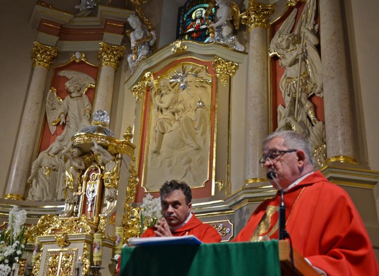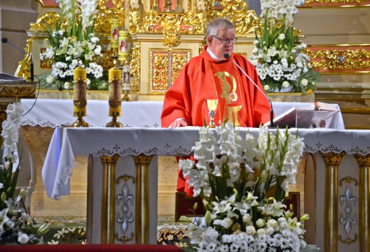 Po Mszy Świętej nadszedł czas na życzenia dla Solenizanta. Najpierw w imieniu całej wspólnoty parafialnej złożył je ks. proboszczowi główny celebrans, ks. kan. Grzegorz. Były oczywiście życzenia Bożego błogosławieństwa, opieki Maryi. Ks. kan. powiedział m.in. „ Życzę Ci, abyś był jak święty Krzysztof, który pomagał pielgrzymom przedostać się się z jednego brzegu na drugi. Abyś Ty był tym, który potrafi ludzi , którzy zostali Ci powierzeni, przeprowadzić do Domu Ojca”. Znalazł się w tych życzeniach „ Rochowy” akcent, bo posługę kustosza sanktuarium ks. kan. Krzysztof spełnia z wielkim zaangażowaniem.Potem przyszedł czas na życzenia od przedstawicieli parafian. Życzenia ks. Proboszczowi złożyła delegacja Liturgicznej Służby Ołtarza, dzieci, rada parafialna, zespół charytatywny, przedstawiciele wspólnot działających w parafii.