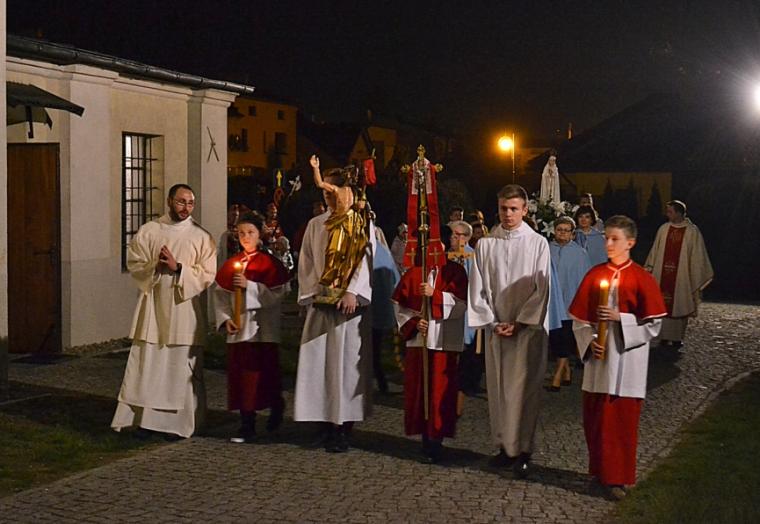 W Sanktuarium Miłosiernego Jezusa Pięciorańskiego, kościele p.w Zesłania Ducha Świętego po zakończonej Liturgii Wigilii Paschalnej odbyła się procesja rezurekcyjna. Wierni uczestniczyli w uroczystej procesji obchodząc trzy razy wokół kościoła oznajmiając, że Chrystus prawdziwie Zmartwychwstał.
