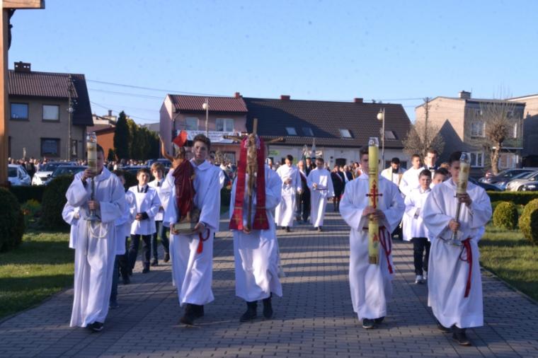 Procesja rozpoczęła się od grobu Jezusa Chrystusa. Udział w niej licznie wzięli wierni oraz asysta procesyjna. Przy akompaniamencie Orkiestry Dętej OSP Wieruszów wierni radowali się ze Zmartwychwstania Chrystusa śpiewając „Wesoły nam dzień dziś nastał”.