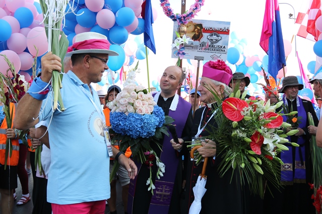 Mieszkańcy Kalisza wyszli 19 sierpnia na ulice miasta, aby powitać powracających z Jasnej Góry pielgrzymów 381. Pieszej Pielgrzymki Kaliskiej i 27. Diecezji Kaliskiej.