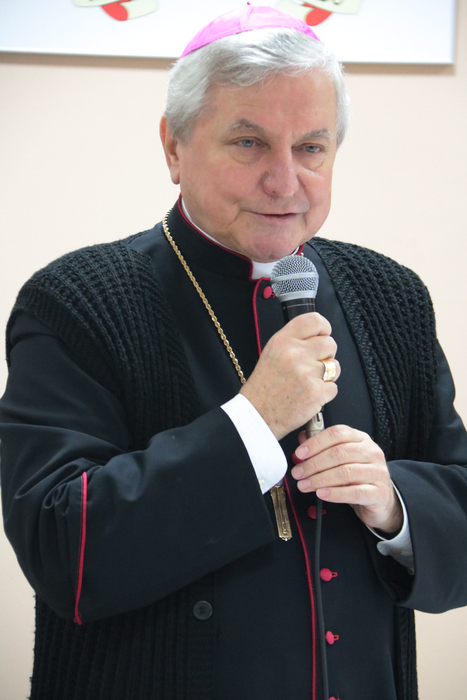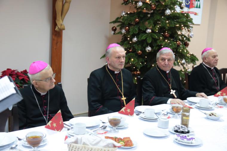 Przed łamaniem się opłatkiem słowo do zgromadzonych skierował biskup kaliski Edward Janiak. – Żyjemy w niełatwych czasach dla Kościoła. Trzeba mieć odwagę, aby być świadkiem i nie wstydzić się wiary. Przez habit i sutannę dajemy świadectwo, ale nieraz też trzeba usłyszeć rzeczy, które nie są miłe dla naszego ucha i to trzeba przyjąć w pokorze – zaznaczył hierarcha. Akcentował, że Pan Bóg przyszedł na świat po to, aby zbawić człowieka. – Człowiek, który nie ma wiary traci nadzieję. Chciałbym życzyć na święta tej perspektywy, nadziei, że wszyscy idziemy w kierunku zmartwychwstania. Życzę, żeby ta wiara nam towarzyszyła we wszystkich czynnościach naszego życia. Zróbmy wszystko, żeby być człowiekiem uczciwym, rzetelnym i żyjącym w prawdzie – mówił bp Janiak.