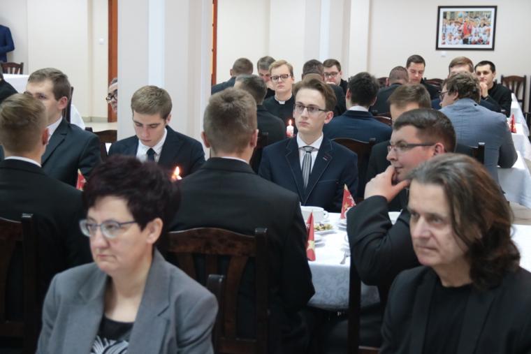 W refektarzu w imieniu wspólnoty seminaryjnej życzenia złożył ks. Marcin Załężny. – Życzę nam wszystkim, abyśmy w Eucharystii widzieli Chrystusa, który rodzi się i przynosi pokój – mówił rektor Wyższego Seminarium Duchownego w Kaliszu.