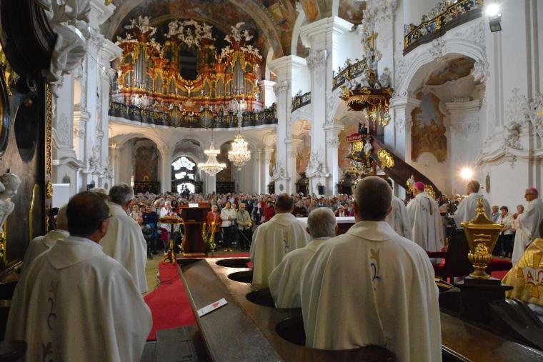 W południe Mszy św. w bazylice przewodniczył biskup legnicki Zbigniew Kiernikowski. Obecny był również bp Marek Mendyk, wieloletni duszpasterz osób niepełnosprawnych, księża z legnickiej Caritas oraz księża pracujący z osobami niepełnosprawnymi oraz pracujący w okolicznych parafiach.