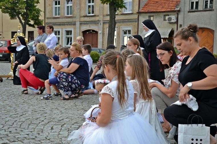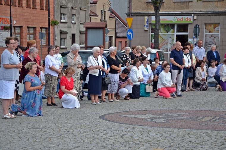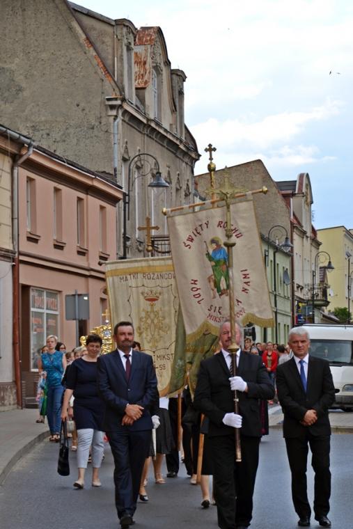 Po  Mszy Świętej udaliśmy się w procesji na Rynek pod figurę Najświętszego Serca Jezusowego. Tu została  odmówieniu Litania do Najświętszego Serca Pana Jezusa. Następnie ks. proboszcz odczytał Aktu poświęcenia miasta NSPJ, ten sam, który wybrzmiał na mikstackim rynku w 1936 roku. Tak jak przed laty popłynęły ku niebu słowa: „Przychodzimy więc dzisiaj, by uznać całkowite panowanie Twoje nad miastem naszem. (...). Panuj więc nad naszym rozumem przez prostotę wiary, panuj też przez swa miłość nad sercami naszemi, które niech całkowicie nią zapłoną. Chcemy je w Twej żarliwej miłości utrzymać przez częste przyjmowanie Komunii św. Racz, Boskie Serce, (...) błogosław nasze duchowne i doczesne przedsięwzięcia, rozpraszaj nasze troski, uświęcaj nasze pociechy i łagódź nasze cierpienia”. Po odnowieniu aktu  ks. kan. Krzysztof  udzielił  błogosławieństwa Najświętszym Sakramentem na cztery strony świata.