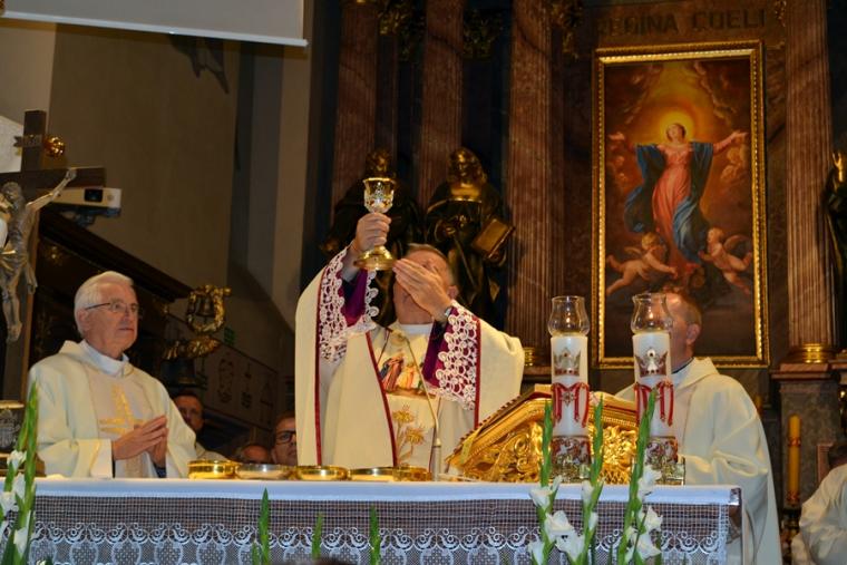 Po konferencji w Kaplicy Cudownego Obrazu zostało odprawione nabożeństwo do św. Józefa, które poprowadził ks. Michał Świgoniak. Ku niebu popłynęły słowa powitania św. Józefa, podziękowania za otrzymane łaski, ale także prośby, które w sobotnie przedpołudnie zostały złożone w sanktuarium. Po nich odmówiona została Litania do św. Józefa. Gdy zegar na wieży wybił godzinę dwunastą odśpiewany został Anioł Pański. Po modlitwie ks. prałat Jacek Plota, skierował słowa powitania do pielgrzymów. Najważniejszym punktem sobotniego spotkania ze Świętym Józefem była Eucharystia. Przewodniczył jej ks. prałat Jacek Plota, kustosz tego wyjątkowego miejsca, a współcelebransami kapłani przybyli z wiernymi ze swoich parafii. Homilię podczas Mszy św. wygłosił ks. Szymon Rybak. Rozpoczynając podkreślił, że nie jest przypadkiem, że znaleźliśmy się w Narodowym Sanktuarium Świętego Józefa właśnie w tym dniu. Zachęcał do tego, by poszukać samodzielnie odpowiedzi na pytania, po co się tutaj znaleźliśmy? Co św. Józef chce powiedzieć każdemu z nas? Nawiązując do słów Ewangelii (Łk8,4-15) podkreślił, że Pan Bóg jest tym, który sieje Słowo, niezależnie od tego, gdzie ono padnie, mając nadzieję, że wyda ono plon. Zaznaczył, że patrząc na życie św. Józefa widzimy, że jest ono żyzną glebą. Następnie ks. Szymon przywołał historię którą kiedyś usłyszał, a dotyczyła ona pytania, jakie konająca matka postawiła synowi kapłanowi: Czy ty naprawdę, żyjesz z Jezusem? Matka podkreśliła, że nie pyta syna kim jest, jakie ma znajomości, jaką ma władzę, ale czy naprawdę żyje z Jezusem. Kontynuując kaznodzieja podkreślił, że nie interesują go znajomości, pozycja społeczna, status materialny, decyzje, które mają do podjęcia zebrani w sanktuarium, ale interesuje go to czy naprawdę żyją z Jezusem. Jednocześnie podkreślił, że nie chodzi tutaj o deklaracje, ale o autentyczne życie wiarą. Ks. Szymon zachęcał, by szukać odpowiedzi na pytanie: kim jest dla nas Jezus, ale nie w deklaracji, tylko w konkretnych sytuacjach życiowych, podczas spotkań z różnymi ludźmi, w podejmowanych decyzjach. Podkreślał, że patrząc na św. Józefa widzimy, że nie składał Bogu wielkich deklaracji, ale cały czas żył słowem Bożym, mówił Bogu o swoich lękach.