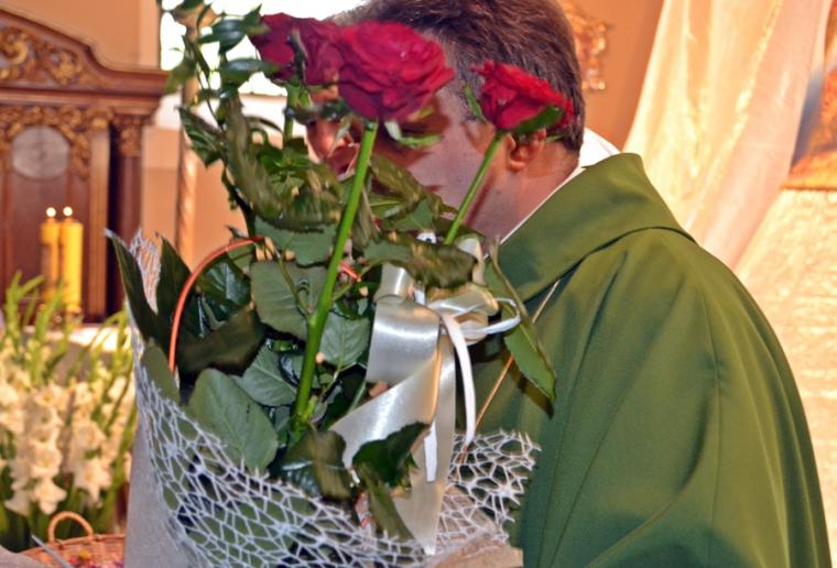 Modlitwa to najpiękniejszy dar dla drugiego człowieka. Ofiarowaliśmy ją ks. proboszczowi. Po Mszy Świętej nadszedł czas na życzenia dla Solenizanta. Z życzeniami pospieszyły delegacje dzieci naszej parafii, Liturgicznej Służby Ołtarza, rady parafialnej, zespołu charytatywnego, zespołu muzycznego, chóru, Wspólnoty Dorosłych. W imieniu kapłanów życzenia ks. kan. Krzysztofowi złożył ks. kan. Grzegorz. Wiele życzliwych słów zostało wypowiedziane w to niedzielne przedpołudnie.  Były życzenia Bożego błogosławieństwa, opieki Maryi, orędownictwa św. O. Pio. Nie zabrakło w życzeniach  „ Rochowego ” akcentu.  Ks. kan. Krzysztof  sprawuje posługę Kustosza Diecezjalnego  Sanktuarium  św. Rocha. Poszukując nieustannie nowych form Jego kultu.  Były więc życzenia, by św. Roch wspierał swym orędownictwem u Pana podejmowane działania, zwłaszcza  dzieło renowacji naszej fary. Uroczystość uświetniło chór i zespół muzyczny.