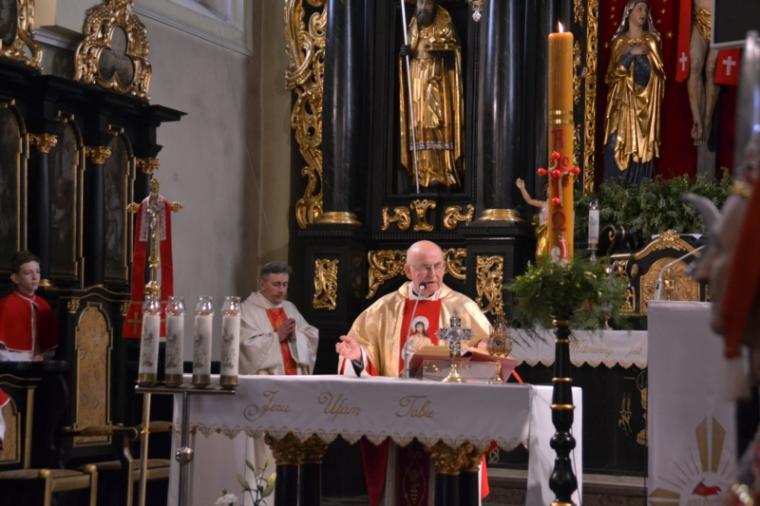 Jesteśmy szczęśliwi tu w Wieruszowie, że posiadamy ceną relikwię obraz Jezusa zranionego – Chrystusa Pięciorańskiego. Jesteśmy szczęśliwi, że pierwszy biskup diecezjalny Stanisław Napierała podniósł ten kościół – nasz kościół wieruszowski - do rangi Diecezjalnego Sanktuarium Miłosierdzia Bożego.