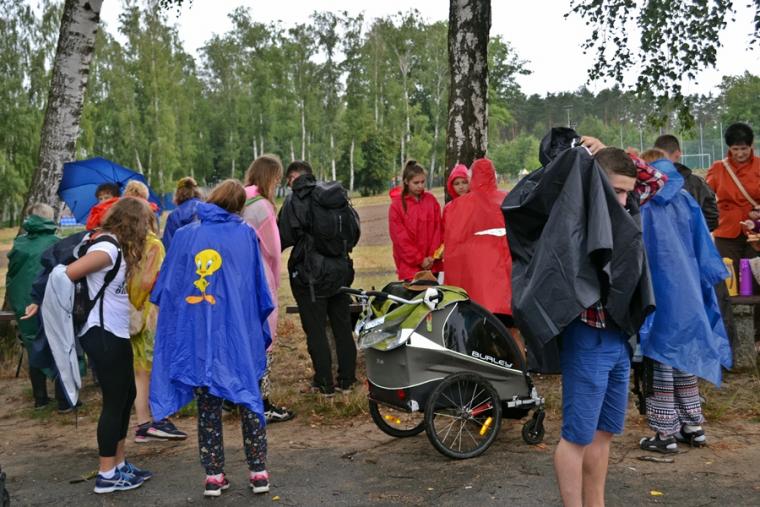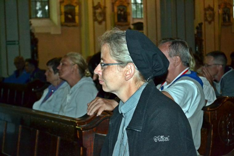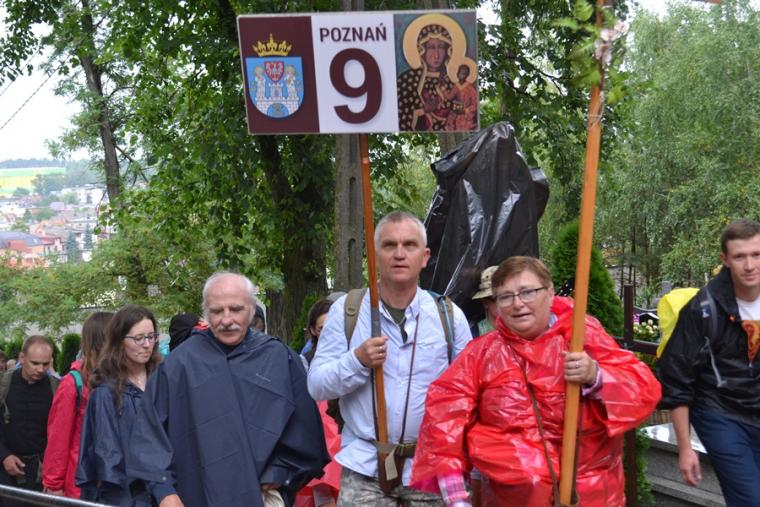 Wiele grup przeszło w ten lipcowy deszczowy dzień przez mikstacką parafię. Jak wspomniano, grupa 8 od lat przyjmowana jest na nocleg przez mieszkańców Mikstatu. Pątnicy z grupy 8 spotkali się o godz. 19:00 w kościele farnym pw. Świętej Trójcy na adoracji Najświętszego Sakramentu. Prowadzący je kapłan w słowach rozważania zwrócił uwagę na cztery etapy rozwoju wiary Piotra. Zachęcał jednocześnie zebranych w świątyni, by odpowiedzieli sobie na pytanie na jakim etapie jest ich wiara. Podczas adoracji była okazja do sakramentu pokuty i pojednania. Błogosławieństwo Najświętszym Sakramentem zakończyło modlitewną część spotkania. Z kolei grupa 9 nocowała w Komorowie. Od pięciu lat po drodze nawiedzają Diecezjalne Sanktuarium Świętego Rocha. Tu zostali powitani przez kustosza miejsca ks. kan. Krzysztofa Ordziniaka, który przybliżył im postać św. Rocha, akcentując rolę i znaczenie krzyża w Jego życiu. Podkreślił, że został on wymodlony rodziców przez wstawiennictwo Matki Bożej. Ks. kustosz zachęcał pątników, by „zaprzyjaźnili się” z tym Świętym, gdyż jest on patronem pielgrzymów. Wymowne było to spotkanie pielgrzymów ze Świętym Rochem. Przecież On też był pielgrzymem, więc doskonale rozumie ich ból, cierpienie, zmęczenie, ale jednocześnie może być dla nich wzorem wzajemnej służby, pomocy, głoszenie miłości Boga do człowieka właśnie na pielgrzymim szlaku. Następnie przy wystawionym Najświętszym Sakramencie pielgrzymi odśpiewali Koronkę do Miłosierdzia Bożego i wyruszyli w dalszą drogę do niedalekiego Komorowa, by tam nieco odpocząć. Rano obie grupy wyruszą na kolejny etap wędrówki… Taki jest pielgrzymi los. Jasna Góra coraz bliżej i już za pięć dni pątnicy staną przed tronem Matki i Królowej, by złożyć u Jej stóp swoje radości i troski, prośby i podziękowania.