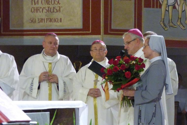 Wszystkich przybyłych powitał biskup legnicki Zbigniew Kiernikowski przedstawiając osobę bpa Stefana Cichego. - Osobiście dziękuję księdzu Biskupowi za wspieranie mnie, jako następcy i za wielką gotowość służenia pomocą. Za to wszystko dziękujemy Panu Bogu i świętym Patronom dostojnego Jubilata. Polecamy w modlitwie osobę księdza biskupa Stefana, życząc mu długich dni życia i owocnej posługi w Kościele Chrystusowym – mówił Ksiądz Biskup.