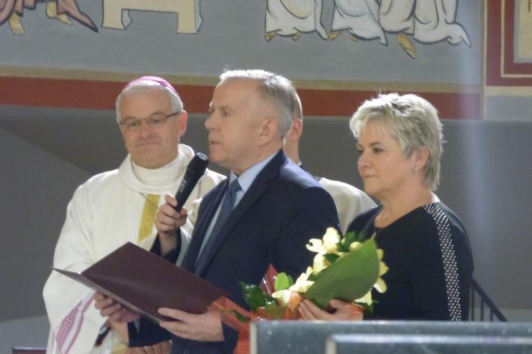 Jubilat odebrał także życzenia od duchowieństwa i zgromadzeń zakonnych, które złożył legnicki biskup pomocniczy Marek Mendyk oraz magdalenka s. Wiesława Kopij CSMM, a ze strony osób świeckich przedstawiciele Akcji Katolickiej - państwo Jaśkowscy.
