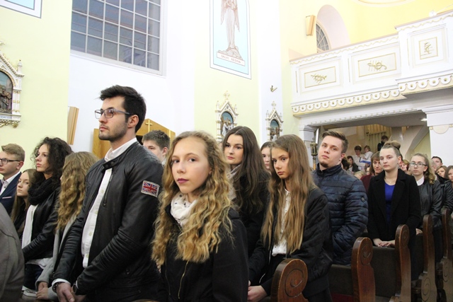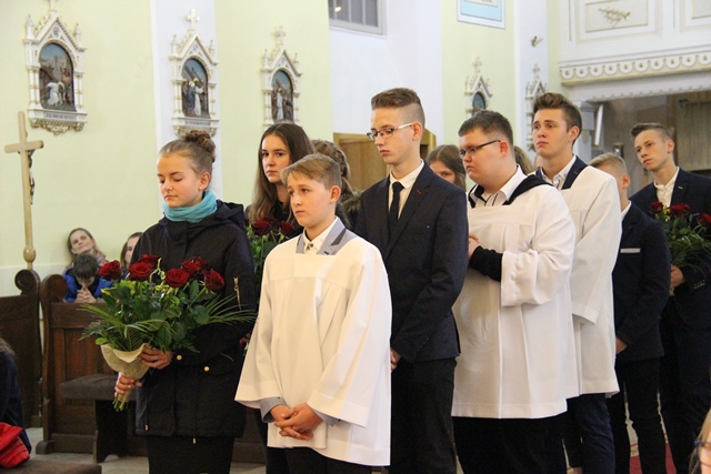 Relikwie bł. ks. Jerzego Popiełuszki zostały przyniesione w procesji z darami przez przedstawicieli rodziny zmarłego ks. prof. Antoniego Lewka.