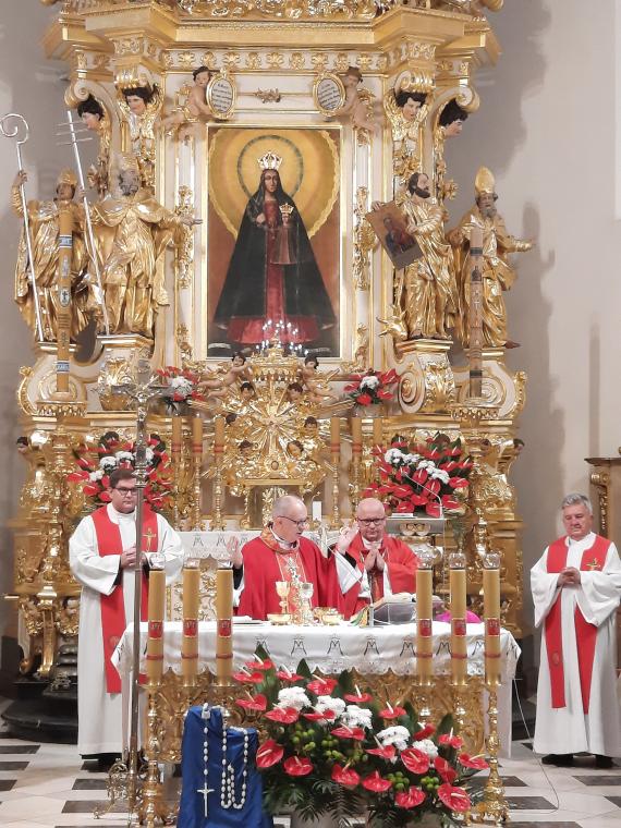 W godzinach wieczornych uczestnicy spotkania zebrali się w Bazylice św. Anny, przed łaskami słynącym obrazem MB Kodeńskiej na Eucharystii, której przewodniczył biskup Waldemar Musioł. Po kolacji i wspólnych nieszporach uczestnicy zebrania wzięli udział w wieczorze integracyjnym.