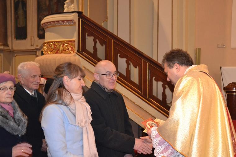 Już przed trzema tygodniami proboszcz mikstackiej parafii, ks. kan. Krzysztof Ordziniak skierował zaproszenie na wspólną Eucharystię do tych, którzy w mijającym roku obchodzili jubileusze 5, 10, 15 ... 60 -lecia zawarcia sakramentalnego związku małżeńskiego. Stało się już tradycją, że w Święto Świętej Rodziny o godz. 11:00 sprawowana jest msza święta w ich intencji. To cenna inicjatywa, gdyż tak wiele słyszy się o kryzysie małżeństwa i rodziny. Była to także okazja do spotkania pokoleń, ale i dawania świadectwa. Ołtarz otoczyli bowiem małżonkowie, którzy stosunkowo niedawno, bo pięć lat temu powiedzieli sobie wobec Pana Boga i ludzi: tak chcemy trwać w zdrowiu i chorobie, w radościach i troskach aż do śmierć, ale i ci którzy słowa te wypowiedzieli sześćdziesiąt lat temu. Zapewne takich chwil radości i trosk nie brakowało w życiu tych, którzy w niedzielę 30 grudnia w Święto Świętej Rodziny zgromadzili się w mikstackim wieczerniku na Eucharystii, by podziękować Bogu za wspólnie przeżyte lata. To piękne świadectwo wiary, ale i wierności.