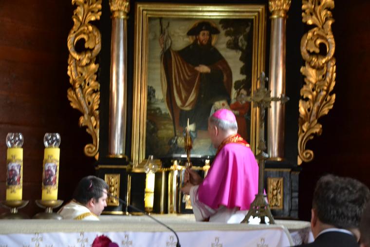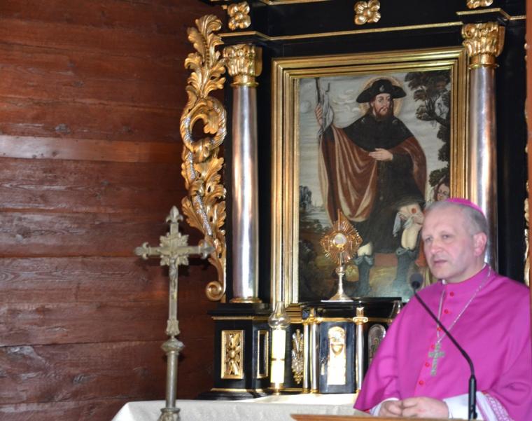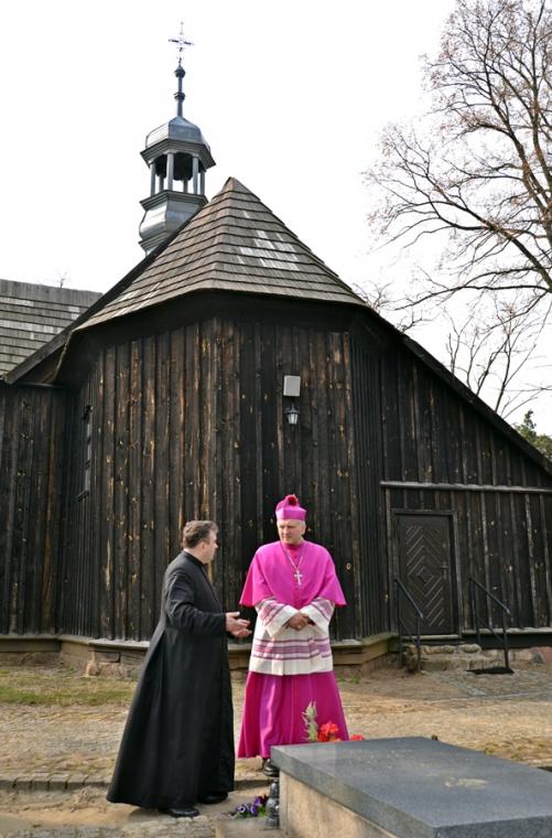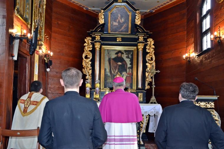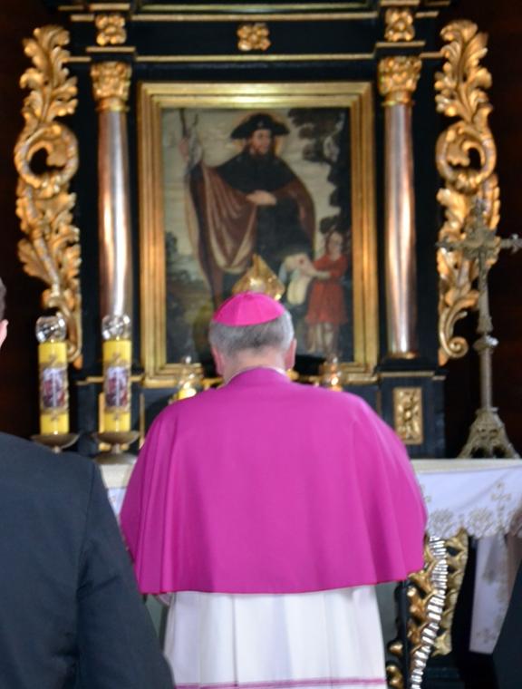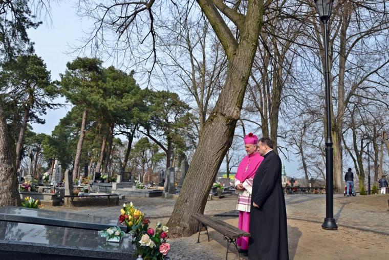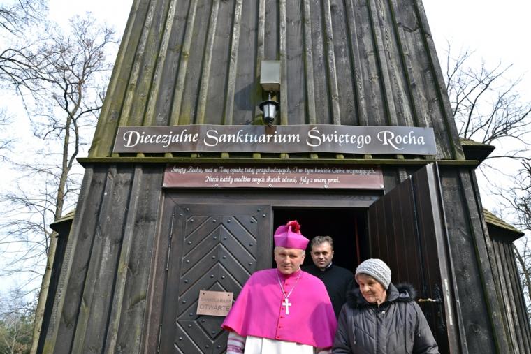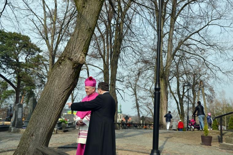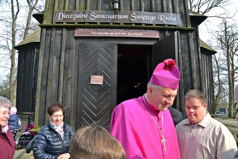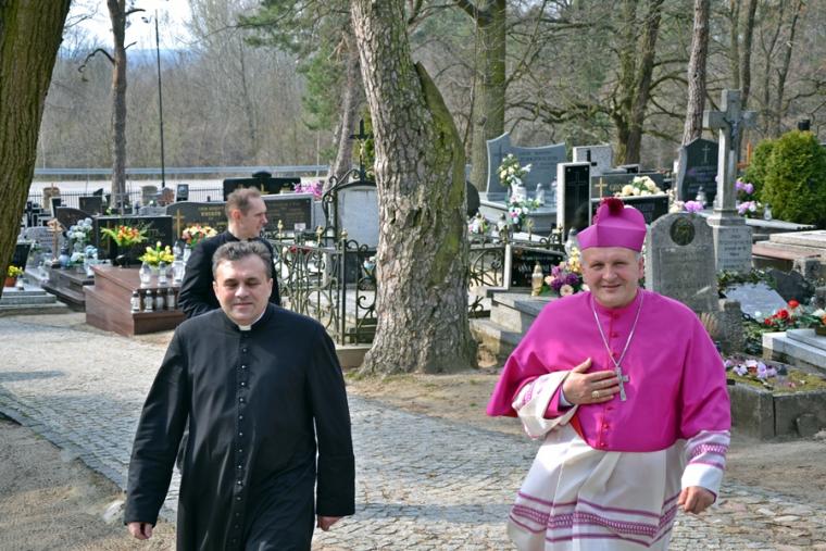 W Godzinie Miłosierdzia ks. biskup nawiedził Diecezjalne Sanktuarium Świętego Rocha. Tu przy wystawionym Najświętszym Sakramencie poprowadził Koronkę do Miłosierdzia Bożego. W słowie skierowanym do zgromadzonych hierarcha przypomniał znaczenie błogosławieństwa w życiu człowieka. Zwrócił uwagę na potrzebę świadczenia miłosierdzia bliźnim. Podkreślił szczególny rozwój nabożeństwa do miłosierdzia Bożego w ostatnich latach. Ksiądz biskup podziękował za spotkanie i wspólnotę modlitwy. Przed udzieleniem błogosławieństwa Najświętszym Sakramentem modlitwą objęci zostali wszyscy spoczywający na naszym cmentarzu. Harmonogram dnia wizytacyjnego jest dość napięty, więc po skończonym nabożeństwie ks. biskup Łukasz wraz z ks. proboszczem udali się na groby kapłanów spoczywających na naszym cmentarzu.