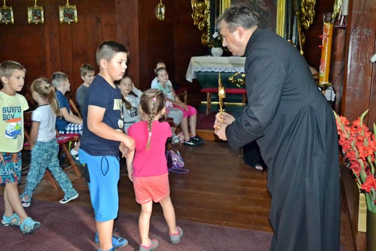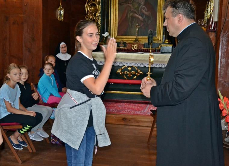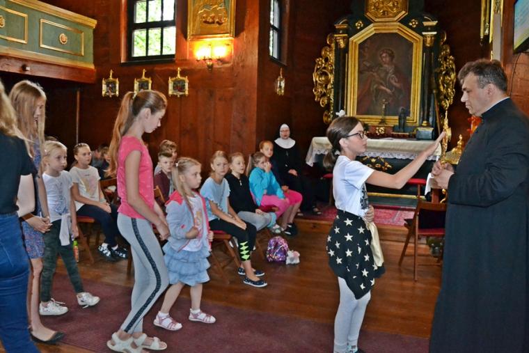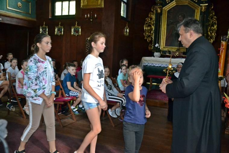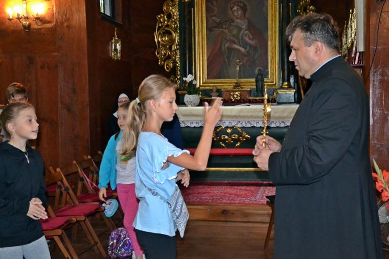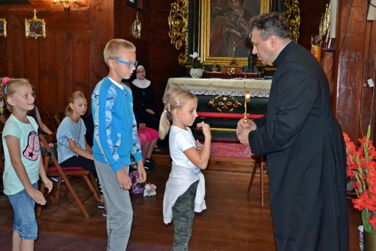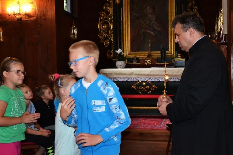 Można powiedzieć, że stało się już tradycją w mikstackiej wspólnocie, że w dniach poprzedzających uroczystości odpustowe ku czci św. Rocha z obrzędem błogosławieństwa zwierząt ks. kan. Krzysztof Ordziniak kustosz sanktuarium zaprasza młodych do szkoły. Spieszymy z wyjaśnieniem, że jest to Szkoła Rochowa, niezwykła, łącząca w sobie wiele elementów takich jak modlitwa, śpiew, nauka, zabawa, spotkania w ciekawymi ludźmi. Trzeba dodać, że czyni to chyba w sposób dla młodych atrakcyjny skoro mimo wakacji chętnie do niej przychodzą. Pierwszy dzień w Rochowej Szkole przebiegał pod hasłem: „Chrzest jako brama Kościoła”. Podczas spotkania ks. kan. Krzysztof Ordziniak  poprowadził modlitwę  nowennową z dziećmi oraz zapoznał je z pierwszym okresem życia patrona sanktuarium. Zwrócił uwagę na słowa testamentu duchowego pozostawionego  mu przez ojca. Był także czas na rozmowę z dziećmi o dziedzictwie, tym należącym do nich, do ich rodzin. Ponadto ks. kan. Krzysztof  wyjaśnił ideę spotkań w Rochowej Szkole w tym wyjątkowym dla mikstackiej wspólnoty parafialnej czasie. Piękna pogoda zachęcała do zabawy na świeżym powietrzu. Ich organizacją zajęła się s. Małgorzata. Jak  w prawdziwej szkole były i zadania domowe. Ksiądz kustosz poprosił dzieci, by wypisały prośby i podziękowania do modlitwy nowennowej.
