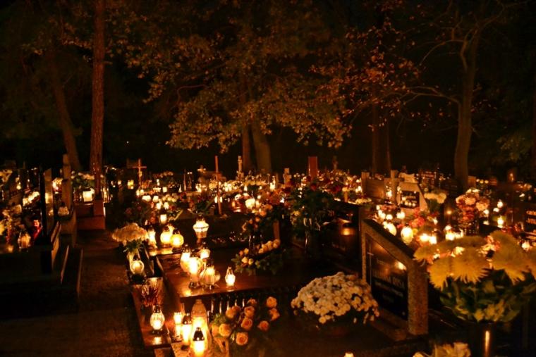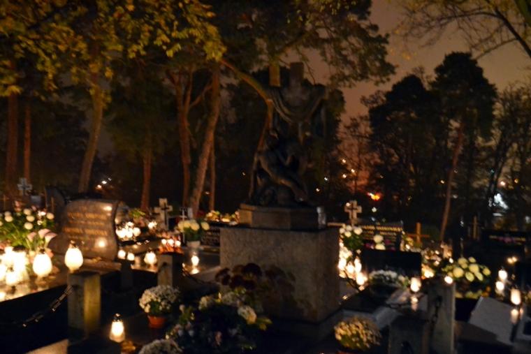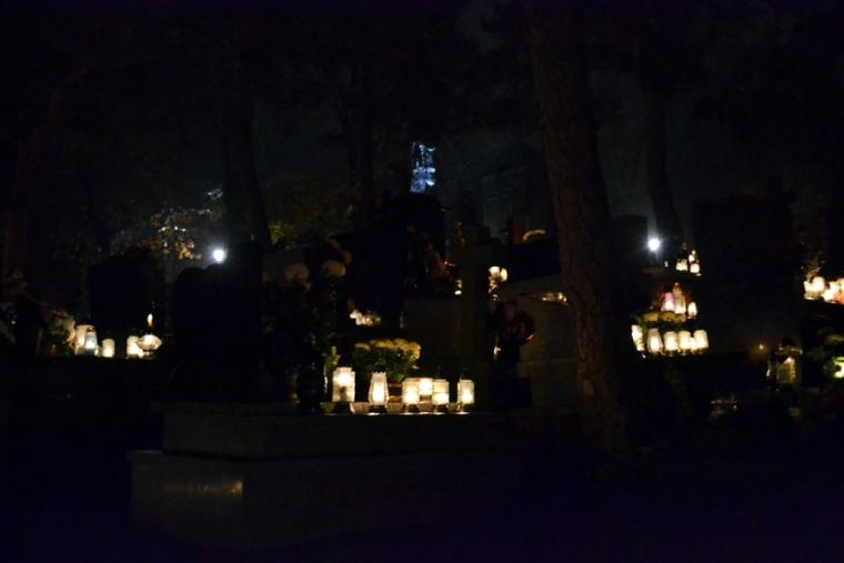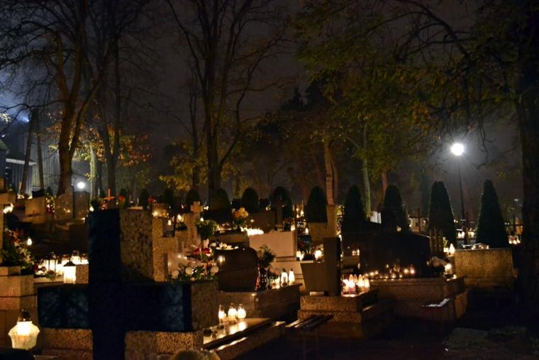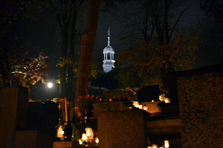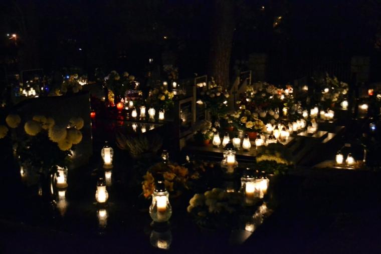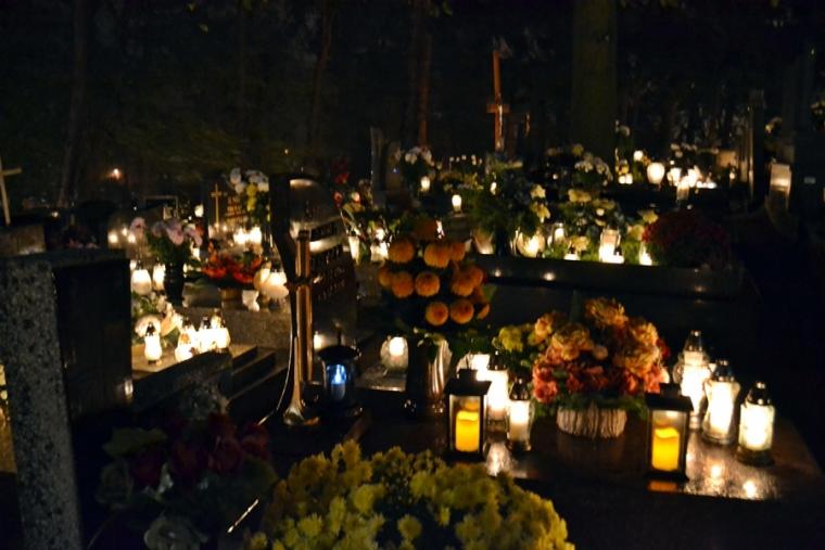 Głęboka w treści i zachęcająca do refleksji, ale i przemiany życia była ta przytoczona w rozważaniu legenda. Czy potrafimy odwiedzić, pocieszyć, dodać otuchy, być przy człowieku pogrążonym w smutku, płaczącym, biednym, głodnym, pragnącym sprawiedliwości. Czy potrafimy zdobyć się na zwykły ludzki gest? Być może to właśnie od tych zwykłych, pozornie nic nie znaczących gestów świadczących o miłości wobec bliźnich będzie zależało co usłyszymy od Boga, gdy przyjdzie nam zdać sprawę z naszego życia. Pan ofiarował nam czas, ale także przykład życia tak wielu świętych. Oni mogli osiągnąć świętość, możemy i my. Czy osiągniemy? Po Mszy Świętej alejkami wokół Sanktuarium wyruszyła procesja, podczas której przy pięciu stacjach modliliśmy się za zmarłych: kapłanów, biskupów, papieży, za rodziców, rodzeństwo, dziadków, krewnych, przyjaciół. Przy trzeciej stacji modlitwą objęliśmy zmarłych parafian, sąsiadów. Nie zabrakło także modlitwy w intencji tych, których miejsca wiecznego spoczynku nie znamy, a także za tych którzy zginęli obozach koncentracyjnych. Przy piątej stacji modliliśmy się za wszystkich zgromadzonych na cmentarzu prosząc dla nich o pragnienie osiągnięcia świętości. Modlitwą objęta została także ta osoba, którą jako pierwszą spośród zebranych Pan powoła do siebie. Nie wiemy kto to będzie, to wie tylko Bóg. Niewątpliwie modlitwa przy tej stacji stanowiła okazję do tego, by zadać sobie pytanie- czy jestem przygotowany ( przygotowana) na spotkanie z Panem. Uroczystość uświetniła orkiestra parafialna. O godz. 19:00 w sanktuarium spotkaliśmy się na modlitwie różańcowej połączonej z wypominkami. Mimo padającego deszczu jeszcze w późnych godzinach wieczornych wielu przemierzało cmentarne alejki, zatrzymując się przy grobach bliskich, przyjaciół, znajomych. Ofiarowana modlitwa, położone na grobach kwiaty, płonące lampki są dowodem na to, że o nich pamiętamy…