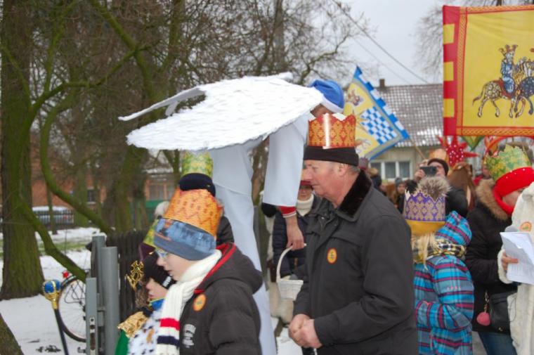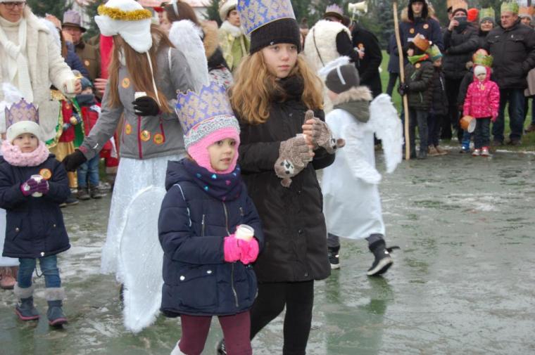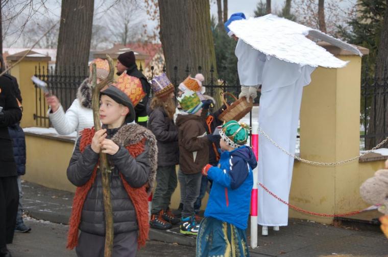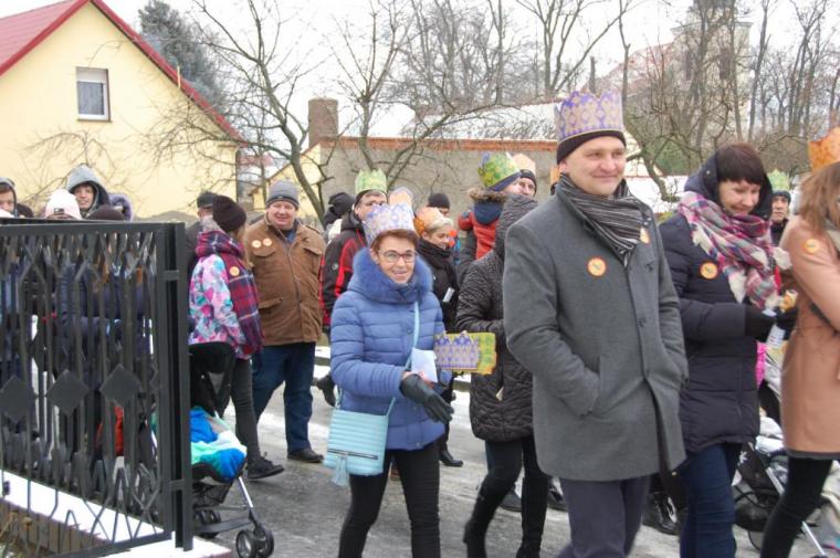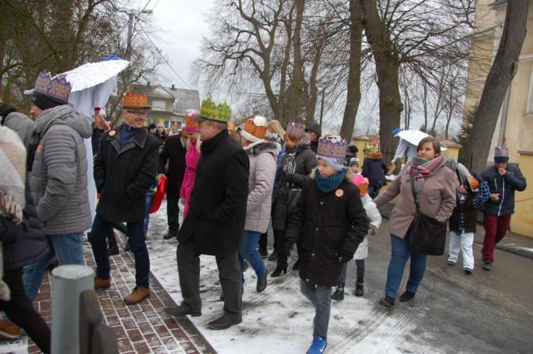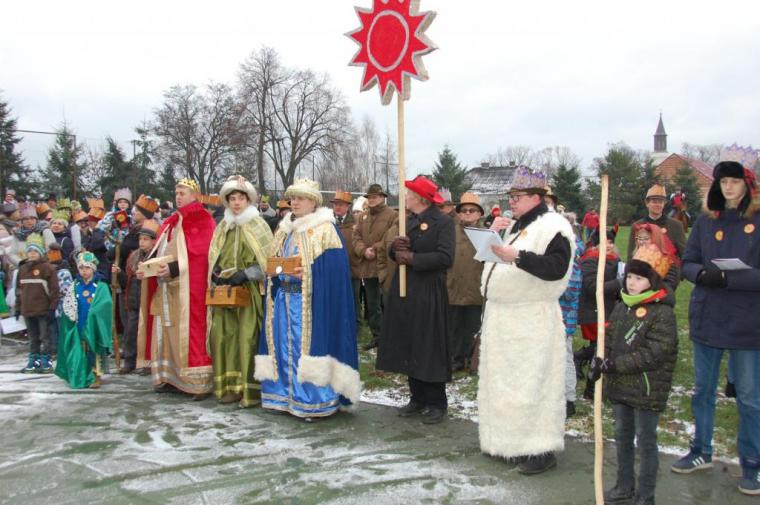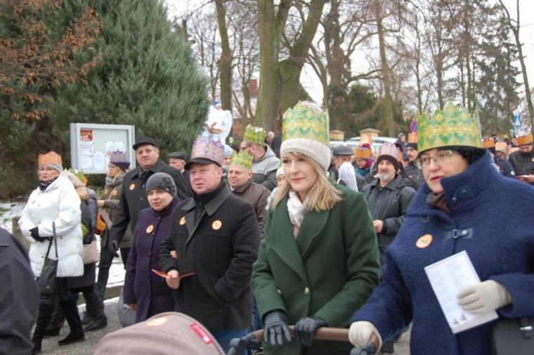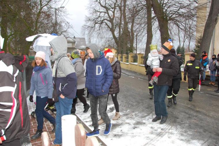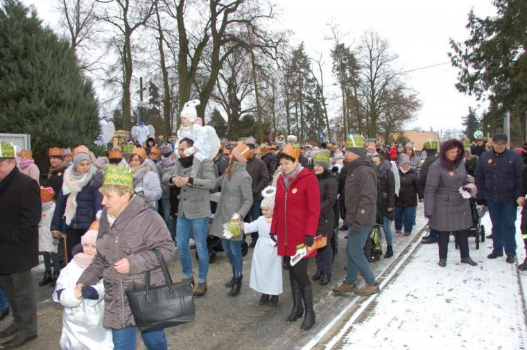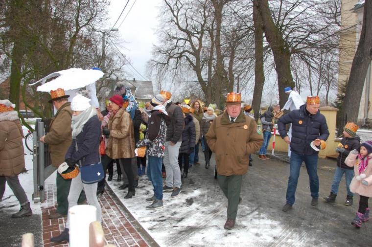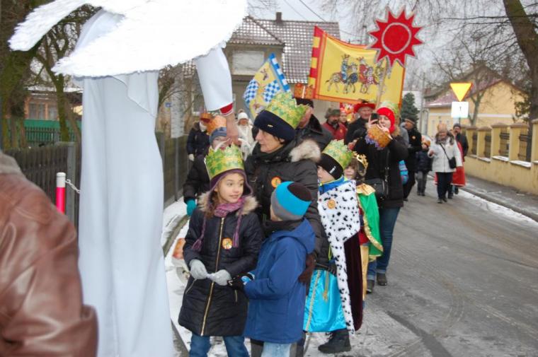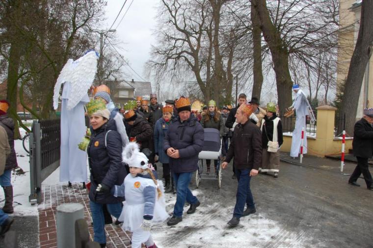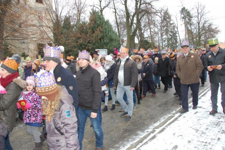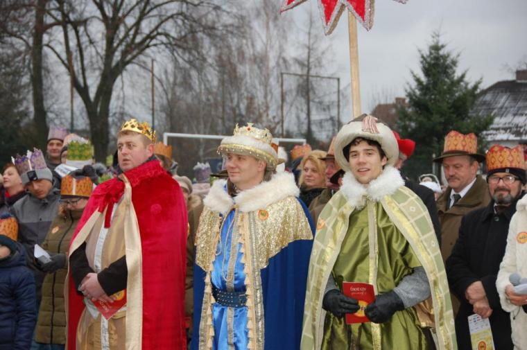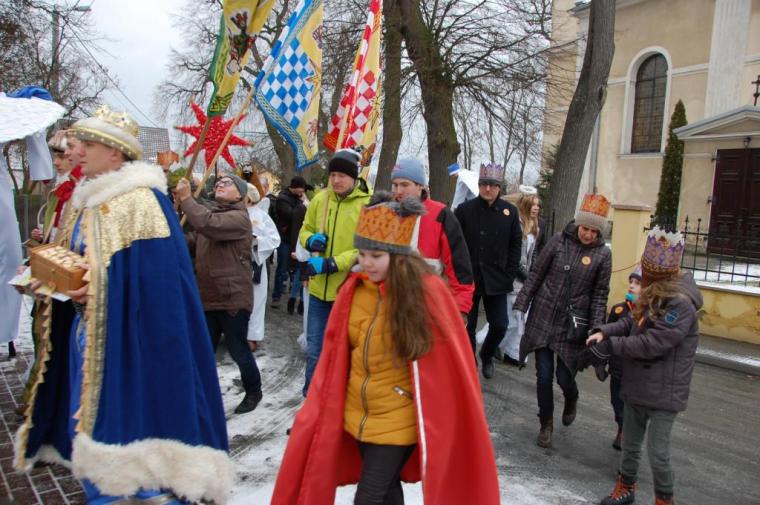 zostały  zainaugurowane uroczystości święta Trzech Króli. Orszak Trzech Króli wyruszył sprzed świątyni, w stronę  Grzybka,  gdzie w powstałej na tą uroczystość Szopce, Kacper, symbolizujący Europę, Melchior ~ Azję, a także Baltazar ~ Afrykę, złożyli dary Jezusowi. Zarówno w rolę Świętej Rodziny jak i Mędrców wcieliły się osoby z tutejszej wspólnoty parafialnej. Wiele wzruszeń dostarczyła uczestnikom Orszaku odśpiewana wspólnie „Kolęda dla nieobecnych”. Natomiast anioły w tradycyjnej już walce na poduszki z diabłami po raz kolejny udowodniły, że dobro zawsze zwycięża. Po ogromnych emocjach Orszak wyruszył w kierunku Altanki u Plebanka, gdzie wszyscy uczestnicy mogli ogrzać się przy ognisku i posilić się pieczoną kiełbaską i grochówką. Na zakończenie delektując się pysznym ciastem i kawą w Domu Ludowym, można było jeszcze raz posłuchać pięknych kolęd w wykonaniu tutejszej młodzieży. Koniecznie trzeba dodać,  uczestnicy Jubileuszowego Orszaku Trzech Króli w Lutogniewie  przybyli z różnych stron naszego regionu.