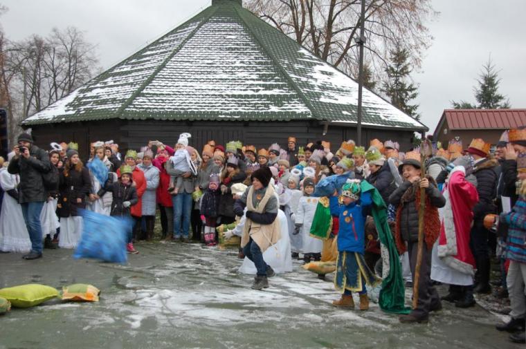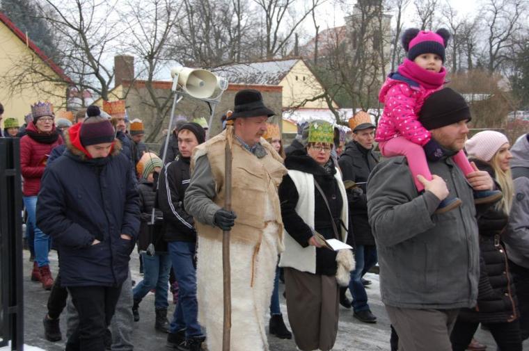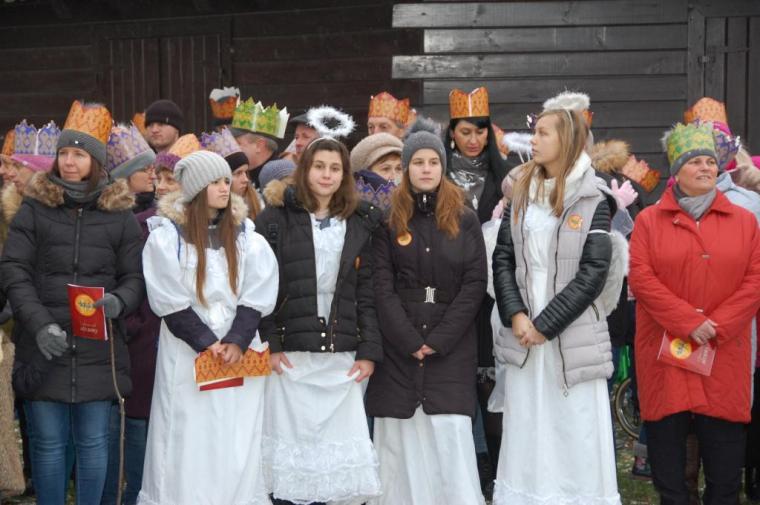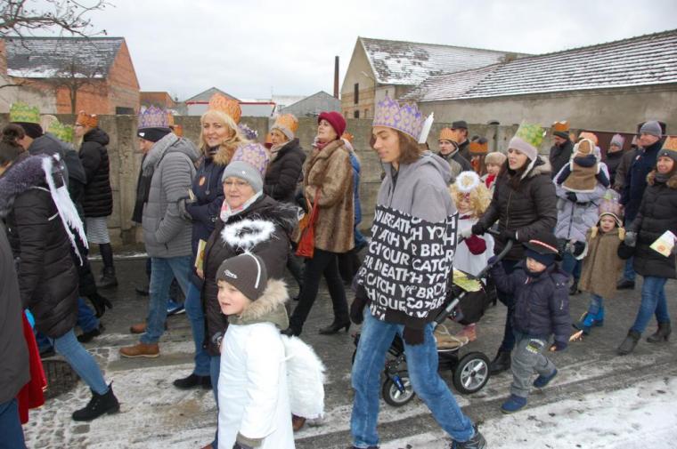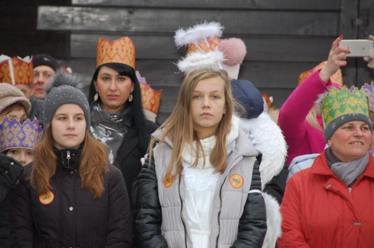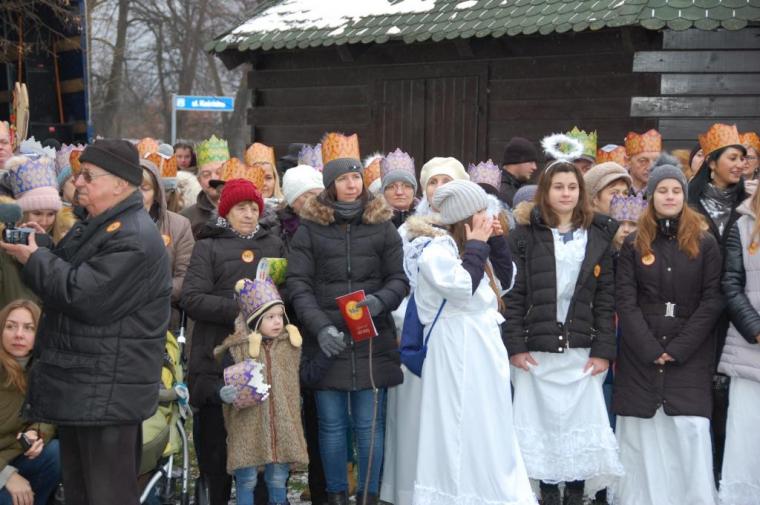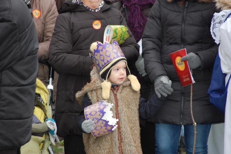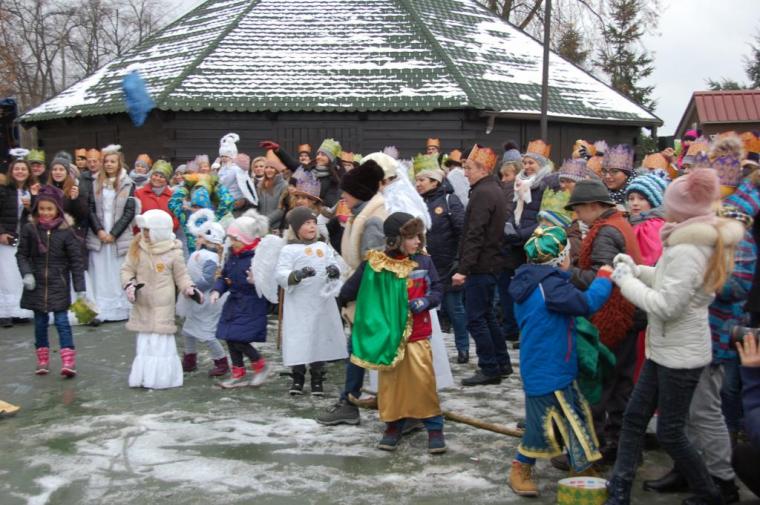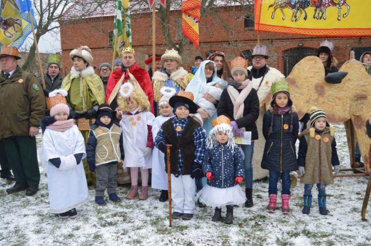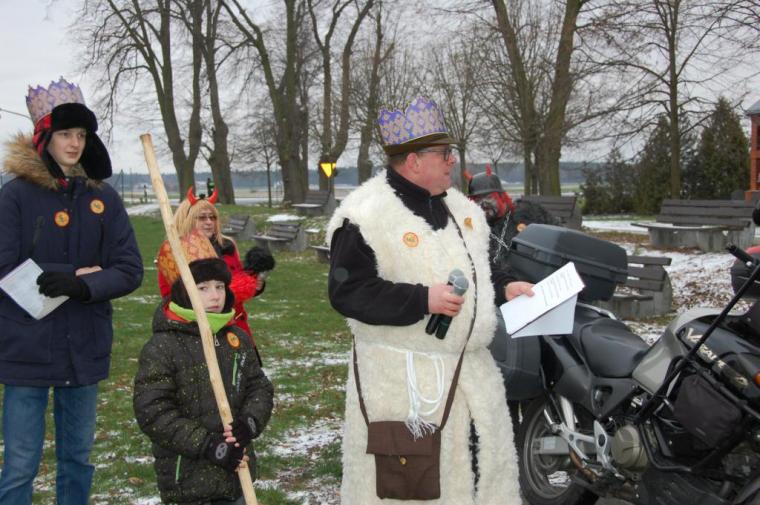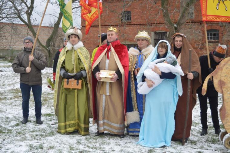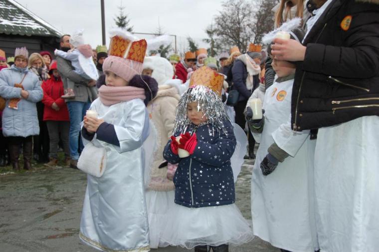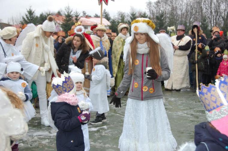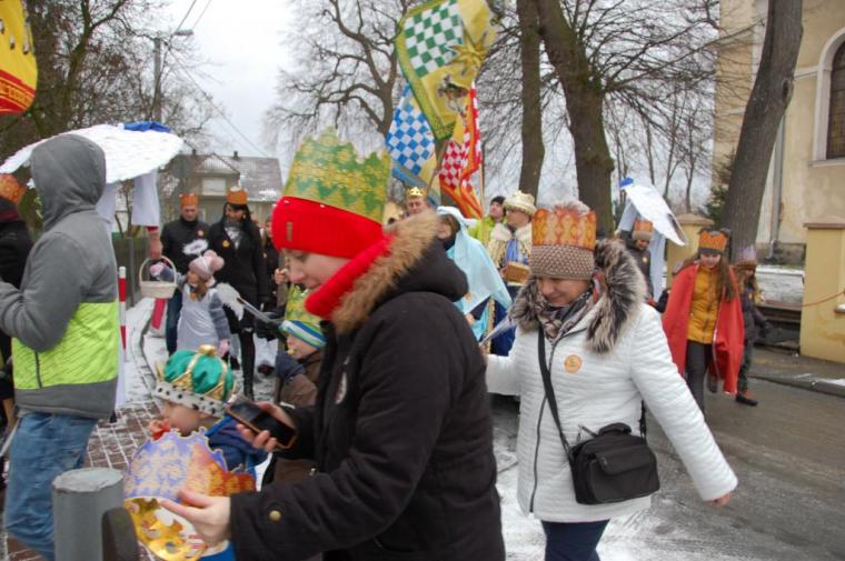 zostały  zainaugurowane uroczystości święta Trzech Króli. Orszak Trzech Króli wyruszył sprzed świątyni, w stronę  Grzybka,  gdzie w powstałej na tą uroczystość Szopce, Kacper, symbolizujący Europę, Melchior ~ Azję, a także Baltazar ~ Afrykę, złożyli dary Jezusowi. Zarówno w rolę Świętej Rodziny jak i Mędrców wcieliły się osoby z tutejszej wspólnoty parafialnej. Wiele wzruszeń dostarczyła uczestnikom Orszaku odśpiewana wspólnie „Kolęda dla nieobecnych”. Natomiast anioły w tradycyjnej już walce na poduszki z diabłami po raz kolejny udowodniły, że dobro zawsze zwycięża. Po ogromnych emocjach Orszak wyruszył w kierunku Altanki u Plebanka, gdzie wszyscy uczestnicy mogli ogrzać się przy ognisku i posilić się pieczoną kiełbaską i grochówką. Na zakończenie delektując się pysznym ciastem i kawą w Domu Ludowym, można było jeszcze raz posłuchać pięknych kolęd w wykonaniu tutejszej młodzieży. Koniecznie trzeba dodać,  uczestnicy Jubileuszowego Orszaku Trzech Króli w Lutogniewie  przybyli z różnych stron naszego regionu.