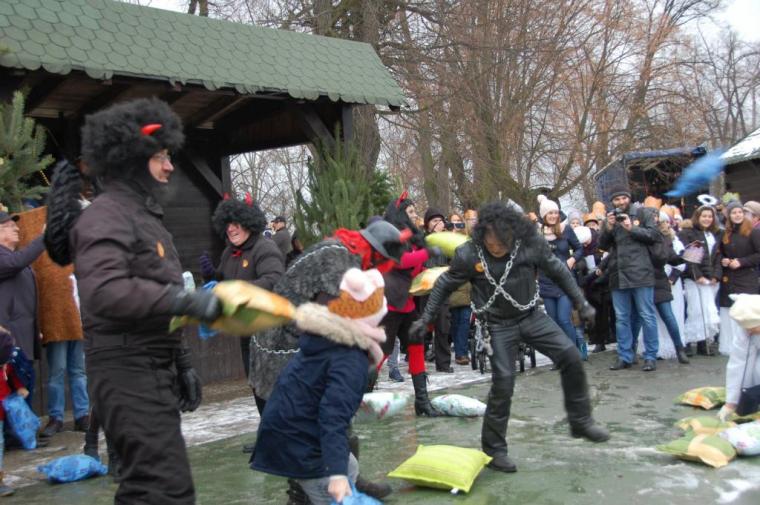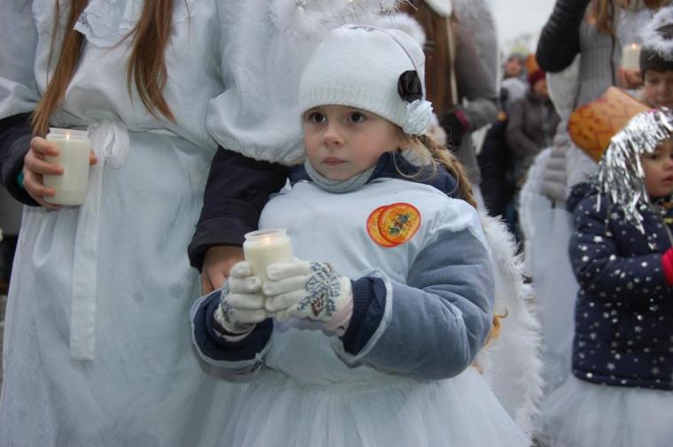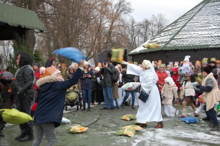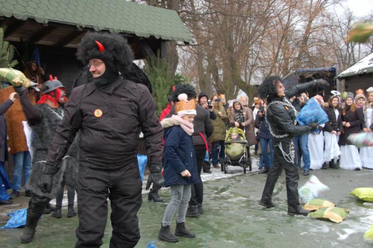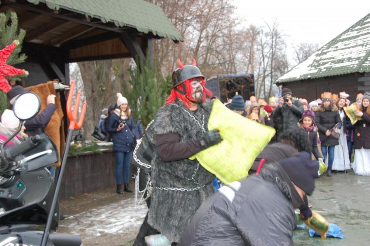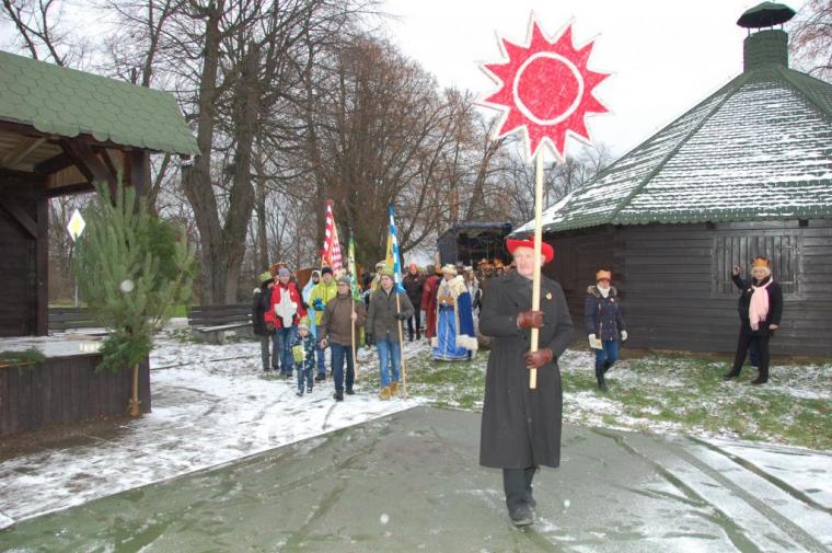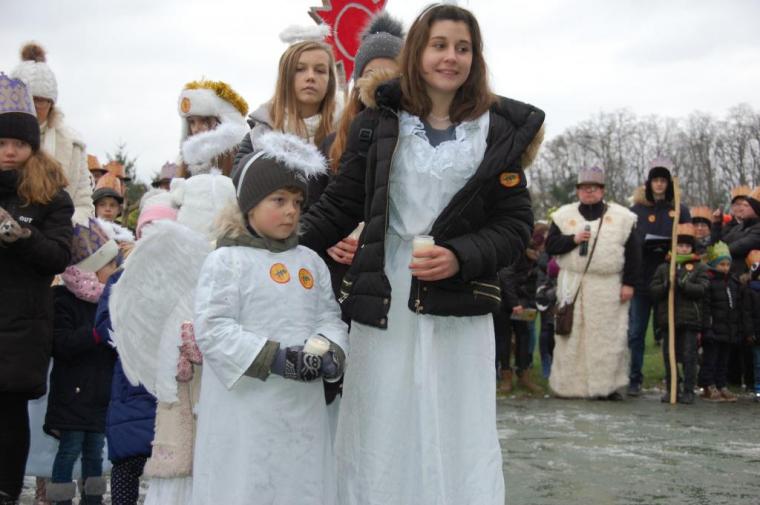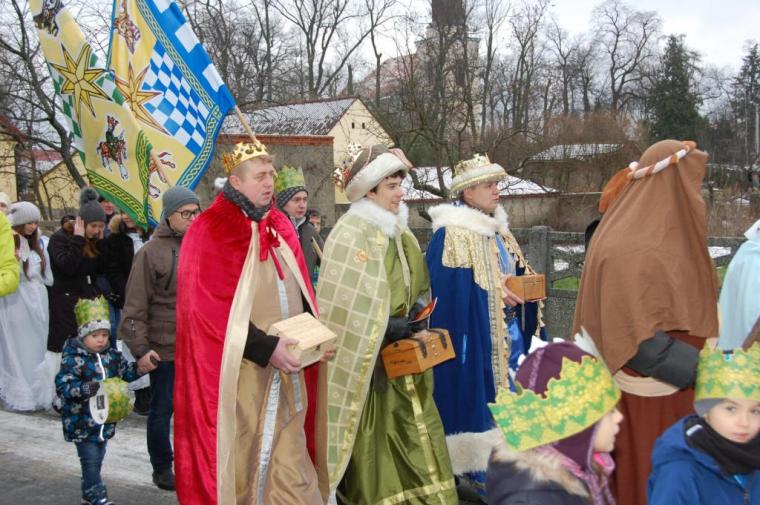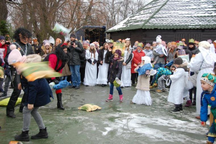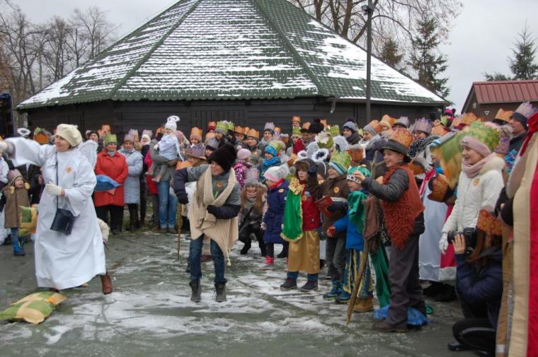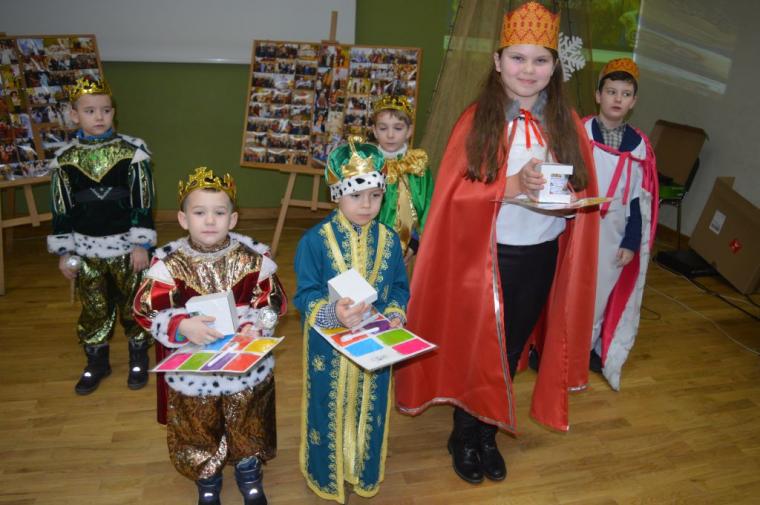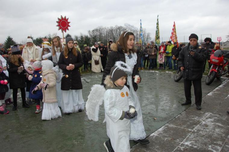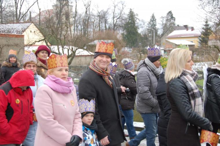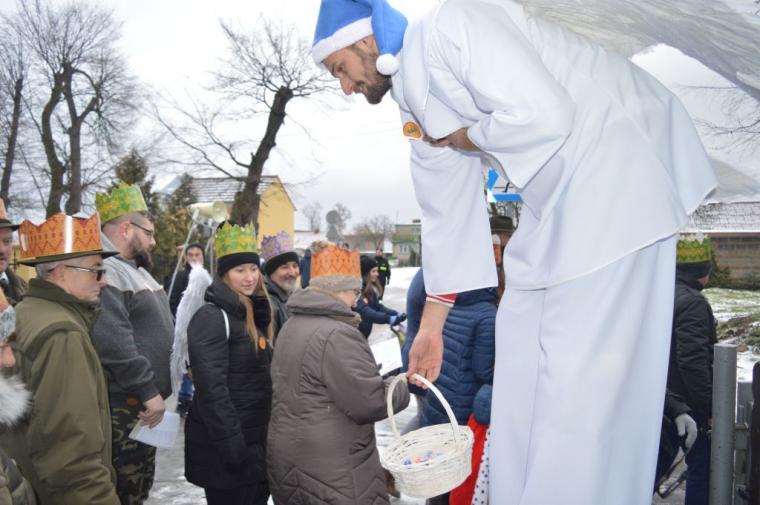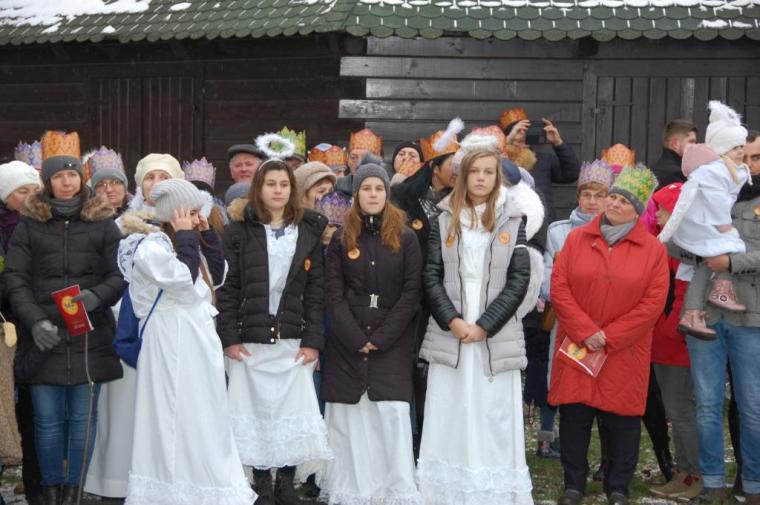 zostały  zainaugurowane uroczystości święta Trzech Króli. Orszak Trzech Króli wyruszył sprzed świątyni, w stronę  Grzybka,  gdzie w powstałej na tą uroczystość Szopce, Kacper, symbolizujący Europę, Melchior ~ Azję, a także Baltazar ~ Afrykę, złożyli dary Jezusowi. Zarówno w rolę Świętej Rodziny jak i Mędrców wcieliły się osoby z tutejszej wspólnoty parafialnej. Wiele wzruszeń dostarczyła uczestnikom Orszaku odśpiewana wspólnie „Kolęda dla nieobecnych”. Natomiast anioły w tradycyjnej już walce na poduszki z diabłami po raz kolejny udowodniły, że dobro zawsze zwycięża. Po ogromnych emocjach Orszak wyruszył w kierunku Altanki u Plebanka, gdzie wszyscy uczestnicy mogli ogrzać się przy ognisku i posilić się pieczoną kiełbaską i grochówką. Na zakończenie delektując się pysznym ciastem i kawą w Domu Ludowym, można było jeszcze raz posłuchać pięknych kolęd w wykonaniu tutejszej młodzieży. Koniecznie trzeba dodać,  uczestnicy Jubileuszowego Orszaku Trzech Króli w Lutogniewie  przybyli z różnych stron naszego regionu.