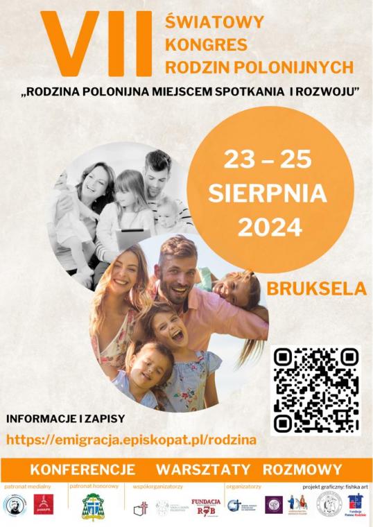 W dniach od 23 – 25 sierpnia 2024 roku odbędzie się w Brukseli VII Światowy Kongres Rodzin Polonijnych zatytułowany: „Rodzina polonijna – miejscem spotkania i rozwoju”. W czasie Kongresu zostaną podjęte zagadnienia związane z budowaniem i umacnianiem dojrzałych relacji małżeńskich i rodzinnych, komunikacji i rozwiązywania konfliktów, reemigracji oraz tematy dotyczące wychowania i wspierania rozwoju dzieci i młodzieży.