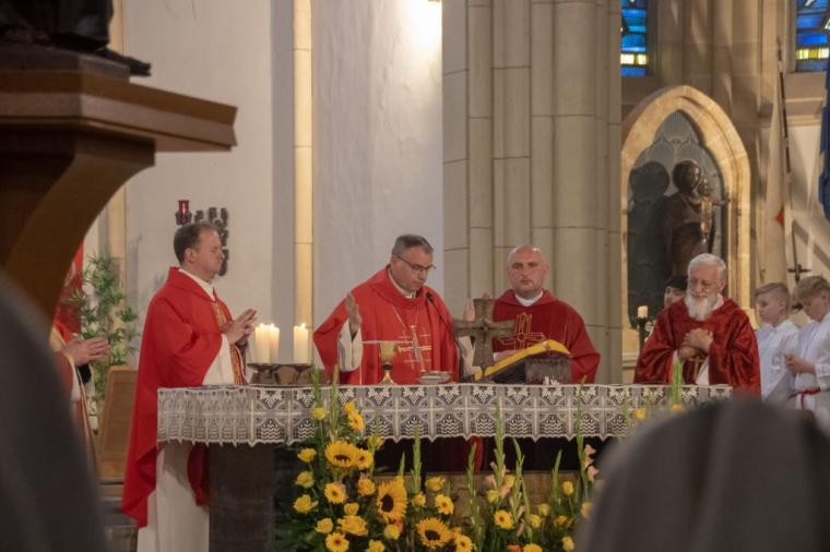 Uroczystej Mszy Świętej jubileuszowej przewodniczył bp Robert Chrząszcz. Homilię wygłosił ks. dr Michał Wilkosz, Rektor PMK w Niemczech. Wspólna modlitwa zgromadziła parafian, duchowieństwo oraz siostry zakonne – tworząc atmosferę duchowej bliskości i wdzięczności.