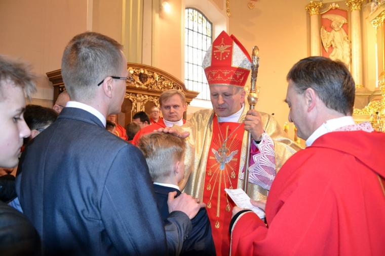 Po wyznanie wiary i modlitwie ks. bpa i obecnych kapłanów  o dary Ducha Świętego dla przyjmujących Sakrament Bierzmowania miało miejsce namaszczenie  czoła olejem Krzyżma Świętego, któremu towarzyszą słowa formuły sakramentalnej: „Przyjmij znamię daru Ducha Świętego”.