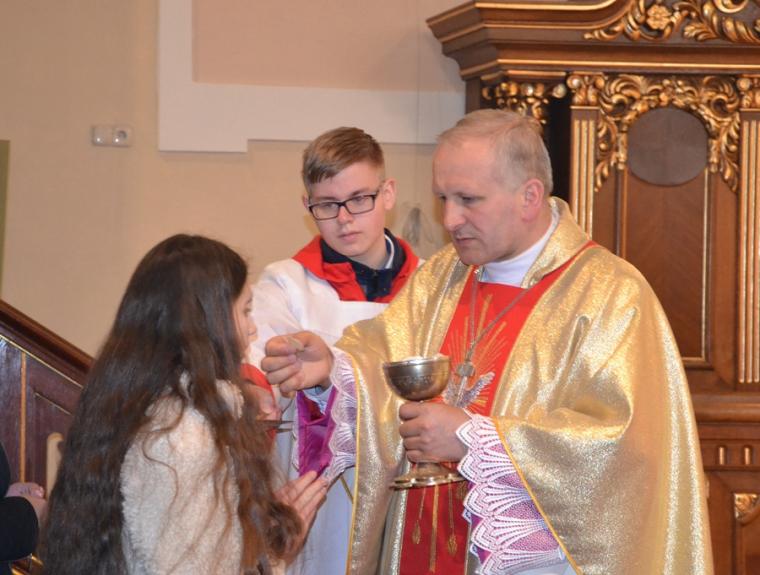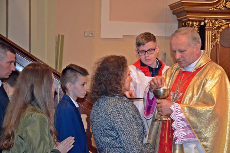Dnia 3. kwietnia mikstacka wspólnota parafialna przeżywała wizytację pasterską, którą przeprowadził ks. bp Łukasz Buzun. Ważnym jej punktem była sprawowana o godz. 17:00  Eucharystia. Przewodniczył jej ks. bp Łukasz, a wraz z nim przy ołtarzu stanęli kapłani na co dzień   posługujący w naszej parafii oraz kapłani z dekanatu mikstackiego. Przed rozpoczęciem mszy świętej ks. proboszcz Krzysztof Ordziniak odczytał sprawozdanie, w którym przedstawił najważniejsze wydarzenia z życia parafii w ostatnim pięcioleci. Wskazał najważniejsze inicjatywy duszpasterskie podjęte w tym okresie oraz zrealizowane prace renowacyjne. Skierował słowa podziękowania do wszystkich angażujących się w prace na rzecz naszej wspólnoty parafialnej. Kończąc sprawozdanie ks. biskup zwrócił się z prośbą do ks. biskupa  o przewodniczenie mszy świętej  w intencji wszystkich parafian. Prośbę  o udzielenie sakramentu bierzmowania skierowali do ks. biskupa przedstawiciele rodziców. Podczas tej mszy świętej 26  młodych parafian  przyjęło Sakrament Bierzmowania, a wraz z nim Dary Ducha Świętego, które mają pomagać im w mężnym wyznawaniu wiary, w dawaniu świadectwa o Chrystusie w codziennym życiu. W czasie Eucharystii zostaliśmy ubogaceni słowem, które skierował do nas ks. biskup. Nawiązując do słów Ewangelii ksiądz biskup podkreślił, że jest ona streszczeniem teologii, eschatologii. Ukazuje nam perspektywę przeżywania życia w duchu religijnym. Ks. biskup Łukasz zaznaczył, że dzień ten był dniem przeżywania Sakramentu Bierzmowania dla młodzieży i ich bliskich. Zaakcentował, że sakramenty święte udzielane są w przełomowych momentach życia poprzez chrzest, sakrament pokuty, poprzedzający Eucharystię. Sakrament Bierzmowania udzielany jest w takim momencie przełomowym  ludzkiego życia kiedy człowiek  zaczyna się rozwijać, dojrzewać,  przeżywa okres adolescencji, czyli momentu kiedy wszystko zaczyna się w nim krystalizować, to kim naprawdę będzie w przeszłości i na wieczność – powiedział hierarcha. Kontynuując zwrócił uwagę na przykład Chrystusa, który działa tak jak działa Ojciec. Ksiądz biskup podkreślił znaczenie wzoru i relacji w życiu człowieka. Stwierdził, że relacje kształtują  się poprzez sprawiedliwość, która prowadzi do miłości i stanowi zasadniczy element formowania człowieka, który jest dobry, otwarty, życzliwy, pomocny. Wskazując na znaczenie sakramentu bierzmowania podkreślił, że jest on dopełnieniem chrztu świętego, ale ma  także charakter społeczny, gdyż człowiek zaczyna dorastać do własnego zdania. Potrzebna jest tu współpraca z Duchem Świętym, by nie wstydzić się wiary, umieć wyrazić swoje człowieczeństwo. W sakramencie bierzmowania -podkreślił ks. biskup Łukasz -otrzymujemy łaskę, która choć jest niewidzialna również jest relacją. Zwrócił uwagę, że człowiek popełniając grzech zrywa relację z Bogiem i sam nie jest w stanie jej nawiązać, musi otworzyć swoje serce na łaskę Ducha Świętego w sakramencie pokuty. Dokonuje się tam oczyszczenie wewnętrzne i związanie z Bogiem. Hierarcha dodał, że dramat grzechu jest zaprzeczeniem ludzkiej natury i jej dążeń  do piękna, szczęścia do relacji miłości. Kontynuując ks. biskup powiedział: „ Każdy człowiek czy to jest mały czy duży zawsze ma w swoim sercu i człowieczeństwie miejsce na miłość i każdy jej potrzebuje i zawsze jej będzie za mało na drodze ludzkiego życia. Zawsze pozostaje ten duży margines westchnienia, że to nie jest  tak do końca to czego  oczekiwał od drugiego człowieka. Dlatego potrzebujemy Bożej miłości, potrzebujemy Bożego Serca, potrzebujemy tego głębokiego oddechu naszej duszy, która spotyka się z Bogiem we wspólnocie parafialnej”. W dalszej części homilii ks. biskup zwrócił uwagę na wspólnotę parafialną jako miejsce przeżywania kolejnych sakramentów. Zwrócił uwagę, że punktem odniesienia dla każdego z nas jest Jezus Chrystus, a gdy się zagubimy czeka On na nas w sakramencie pokuty. Jest to etap pracy nad sobą, uświadomienia sobie roli natchnień Ducha Świętego. Ksiądz biskup zaakcentował znaczenie modlitwy, zwłaszcza modlitwy wspólnotowej w rodzinie. Zachęcał do zainteresowania się rytuałami  i przeżywania roku liturgicznego w rodzinie. Ks. biskup wskazał na  Maryję, jako tę, u której należy szukać pomocy, gdyż z Nią wszystko w życiu jest do uratowania. Przywołując postać św. Jana Pawła II zachęcał do odmawiania różańca w rodzinach, gdyż jak powiedział: „ to otwiera nasze serce na Boże miłosierdzie na ten naddatek miłości, który wykracza daleko, daleko w nieskończoność poza sprawiedliwość. Zresztą na zasadzie samej sprawiedliwości żadna ludzka relacja, żaden ludzki związek tak naprawdę nie przetrwa długo. Potrzeba tego naddatku, gdy człowiek w sposób niezasłużony udziela drugiemu człowiekowi tego gestu przebaczenia”. Ksiądz biskup zaakcentował, że każdy z nas potrzebuje przebaczenia od drugiego człowieka, ale i od Boga. Kaznodzieja zwrócił uwagę na zachowywania w pamięci i potrzebę  przywoływania dobrych doświadczeń z naszego  życiu, także tych związanych z działaniem Boga i Bożej Opatrzności. Kończąc ks. biskup Łukasz powiedział: „Prośmy teraz naszych wszystkich patronów, prośmy naszych patronów ze chrztu, z bierzmowania, prośmy także Matkę Bożą i św. Józefa oraz św. Rocha, który patronuje tutaj, tej parafii w sposób, aby nasze przeżywanie Sakramentu Eucharystii i Bierzmowania tutaj w tym miejscu i momencie rodziło w nas owoce  nawrócenia, przemiany i zaufania wobec Boga, który jest Ojcem pełnym miłosierdzia. Amen”.