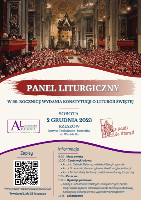 Zbliża się 60. rocznica ogłoszenia soborowej Konstytucji o Liturgii „Sacrosanctum Concilium”. Na tę okoliczność odbędzie się panel liturgiczny.